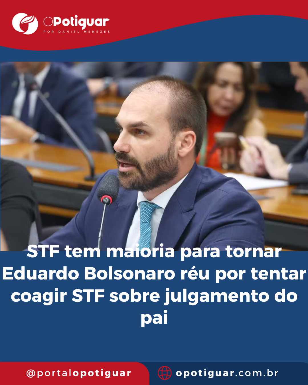 STF tem maioria para tornar Eduardo Bolsonaro réu por tentar coagir STF sobre julgamento do pai