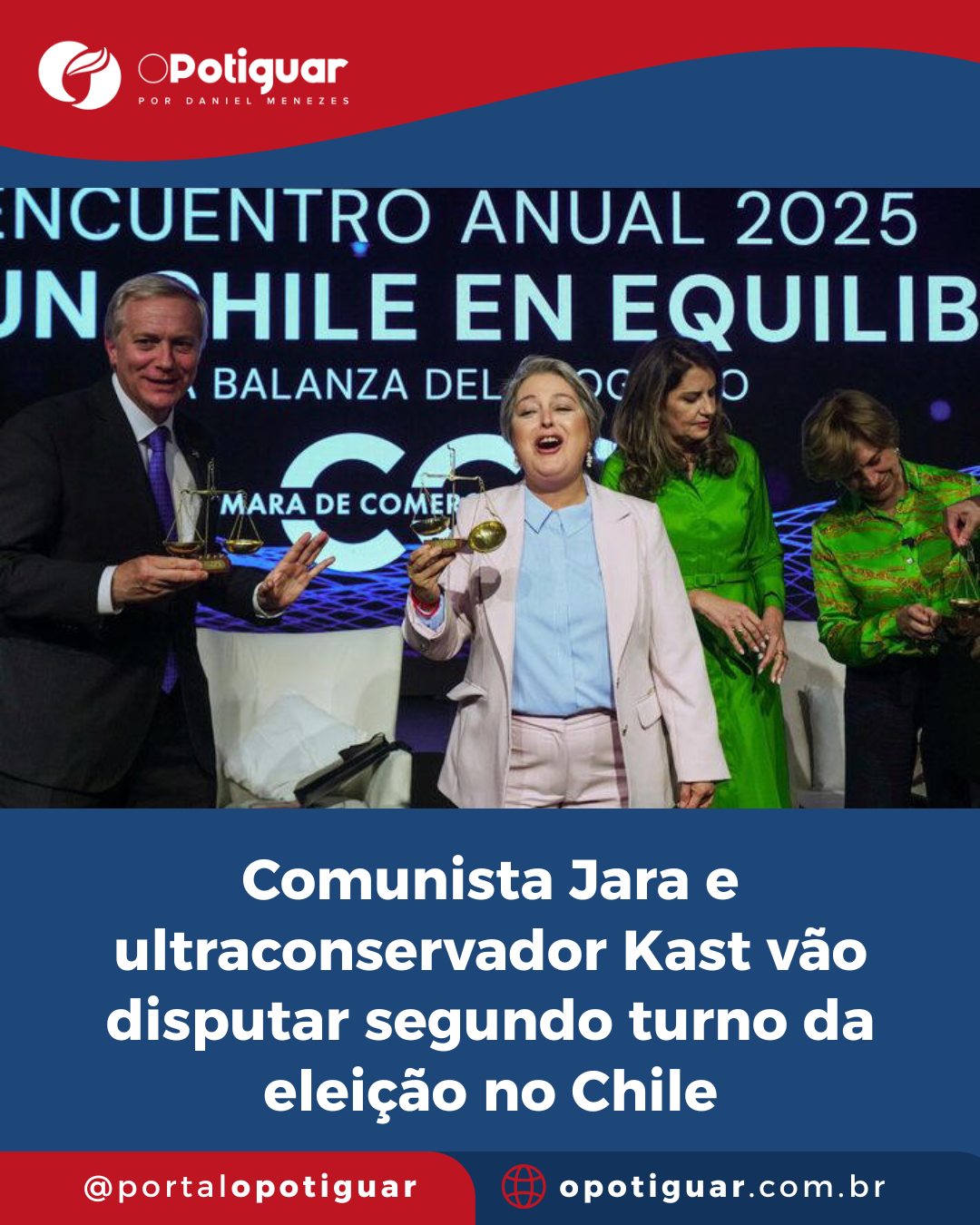 Estadão - SANTIAGO - O Chile terá um segundo turno entre Jeannette Jara, do Partido Comunista Chileno, e José Antonio Kast, do Partido Republicano, indicou o Serviço Eleitoral do país na noite deste domingo, 16.