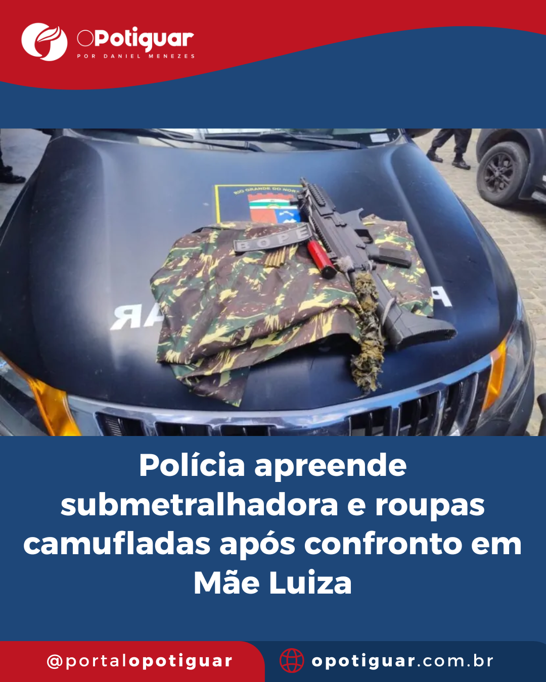 A Polícia Militar do Rio Grande do Norte apreendeu uma submetralhadora, munições e roupas camufladas na manhã deste domingo 16 em uma área de mata próxima ao bairro de Mãe Luiza, na Zona Leste de Natal.