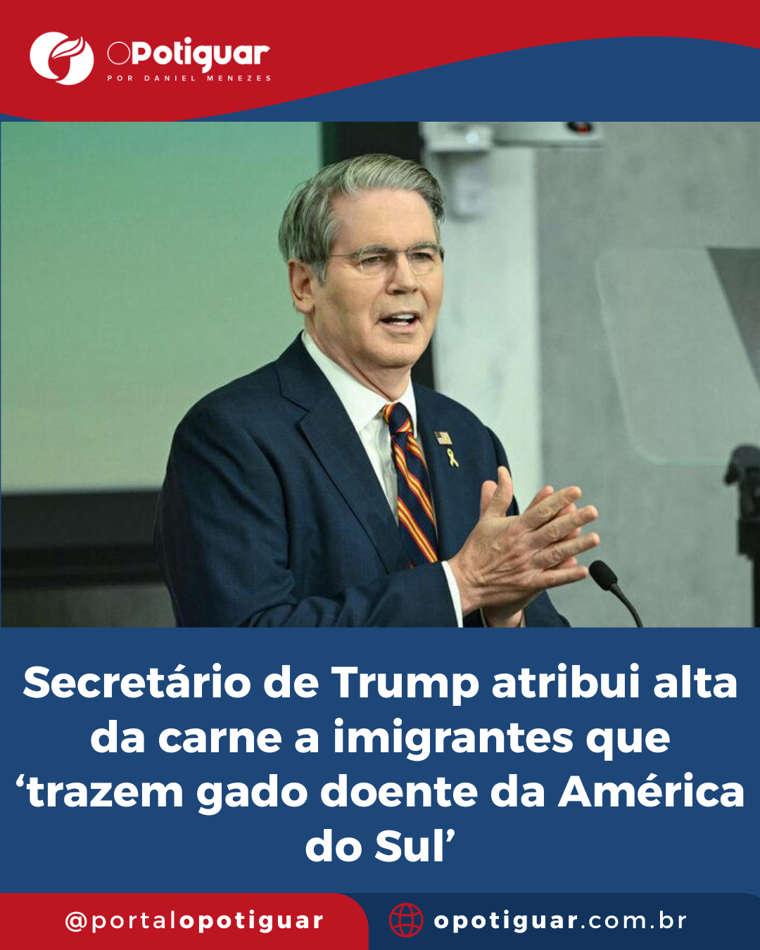 Estadão - Uma fala do secretário do Tesouro dos Estados Unidos, Scott Bessent, tem gerado polêmica ao atribuir a alta dos preços da carne no país aos imigrantes da América do Sul. A declaração foi dada neste domingo, 16, em uma entrevista ao Sunday Morning Futures, no cana Fox News.