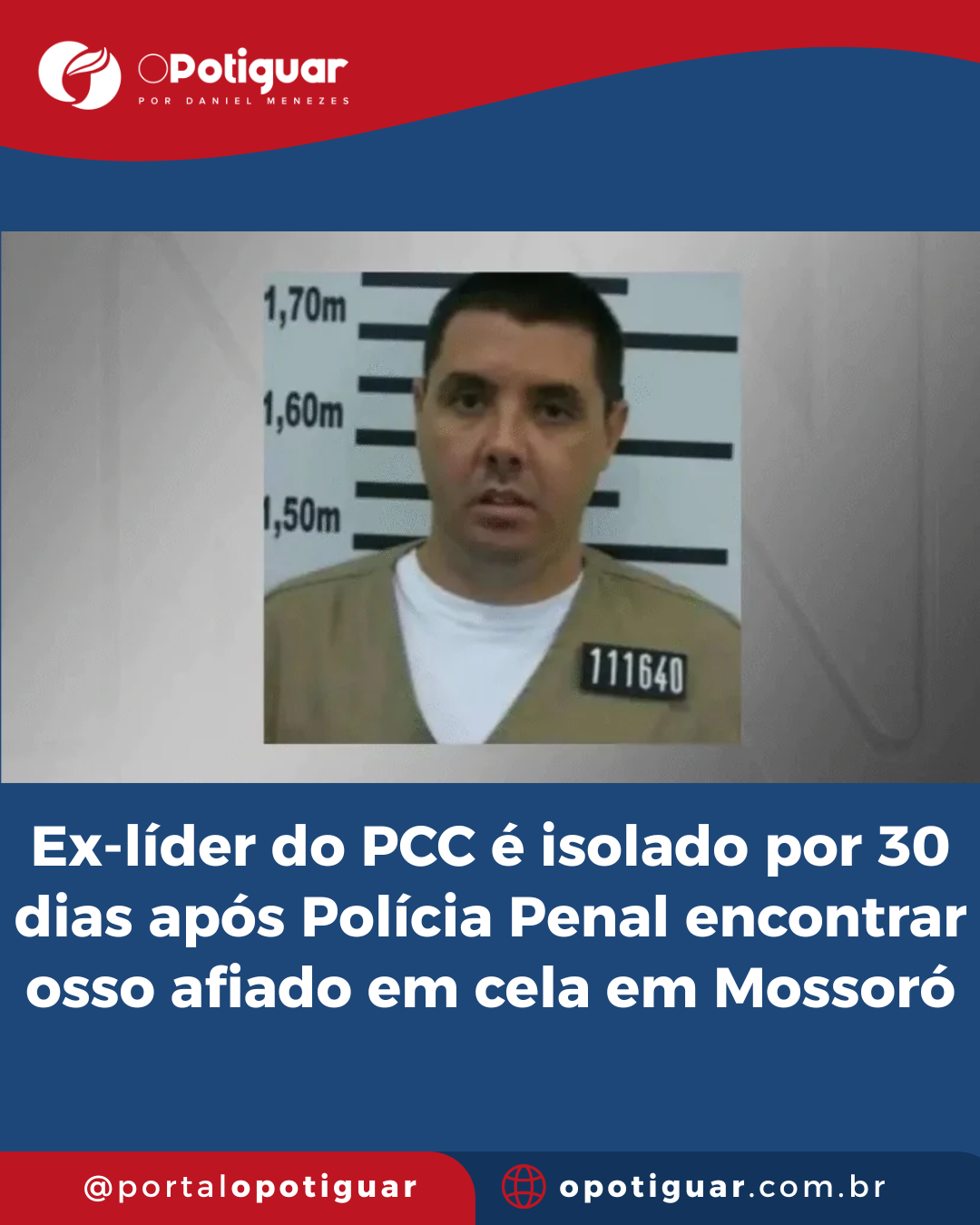 Ex-líder do PCC é isolado por 30 dias após Polícia Penal encontrar osso afiado em cela em Mossoró