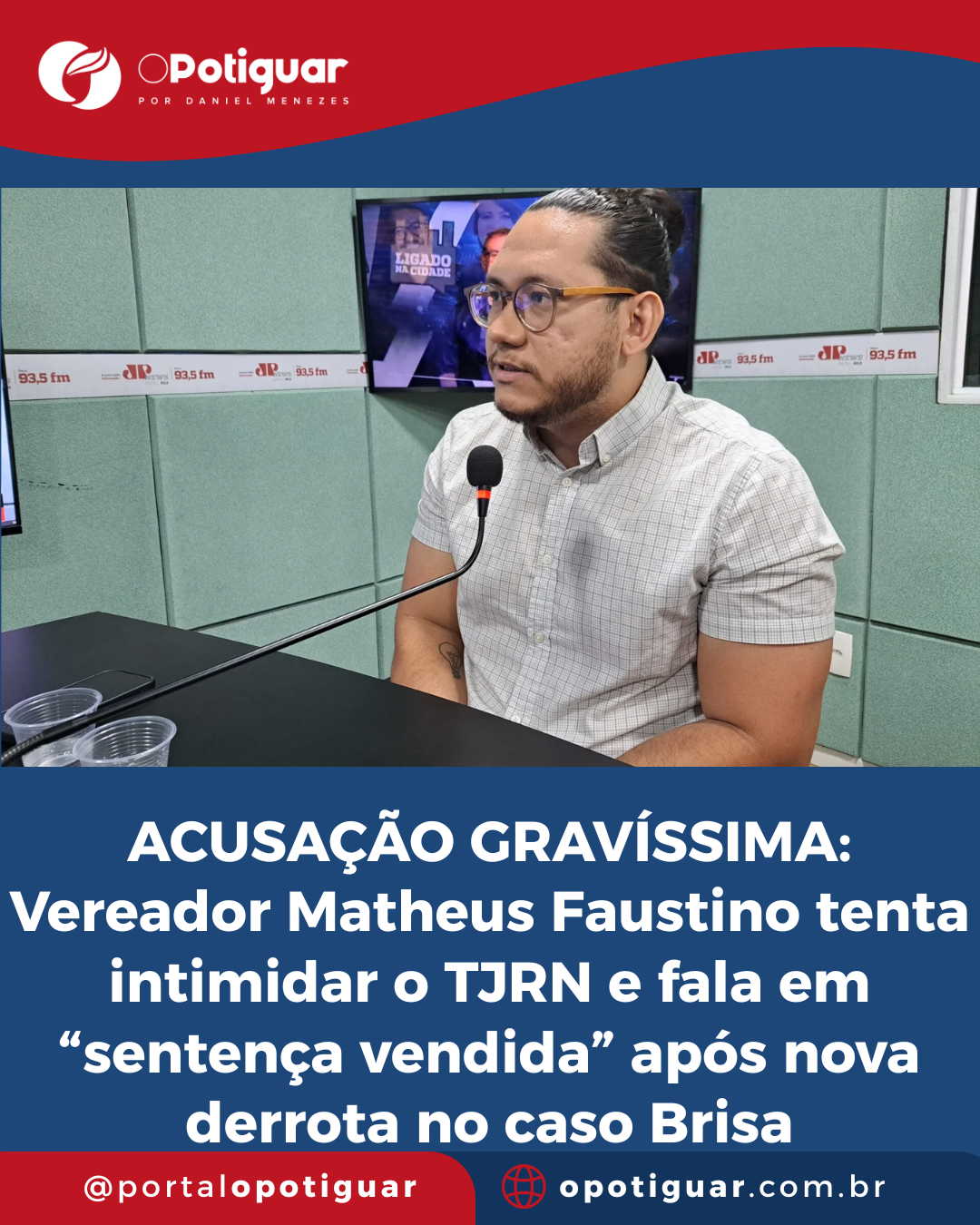 ACUSAÇÃO GRAVÍSSIMA: Vereador Matheus Faustino tenta intimidar o TJRN e fala em “sentença vendida” após nova derrota no caso Brisa