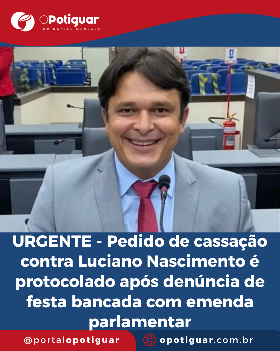 A Câmara Municipal de Natal foi movimentada nesta segunda-feira com o protocolo de um pedido de cassação contra o vereador Luciano Nascimento (PSD). A denúncia aponta que o parlamentar teria utilizado recursos públicos de emenda parlamentar para custear sua própria festa de aniversário, prática proibida e que configura desvio de finalidade.