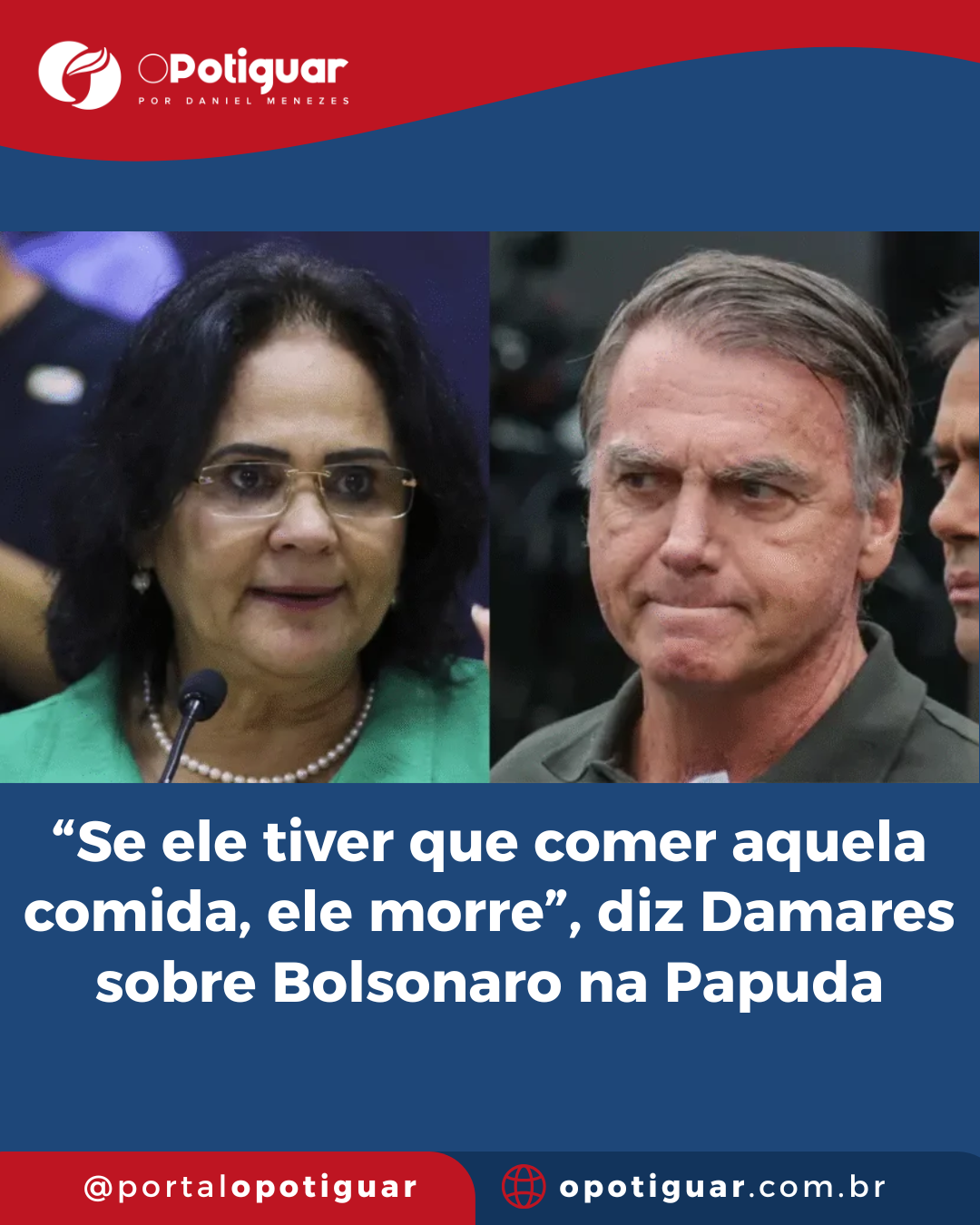 A senadora Damares Alves (Republicanos-DF) disse que o ex-presidente Jair Bolsonaro (PL) pode morrer caso seja enviado ao Complexo Penitenciário da Papuda. “Se ele tiver que comer aquela comida, ele morre”, disse.