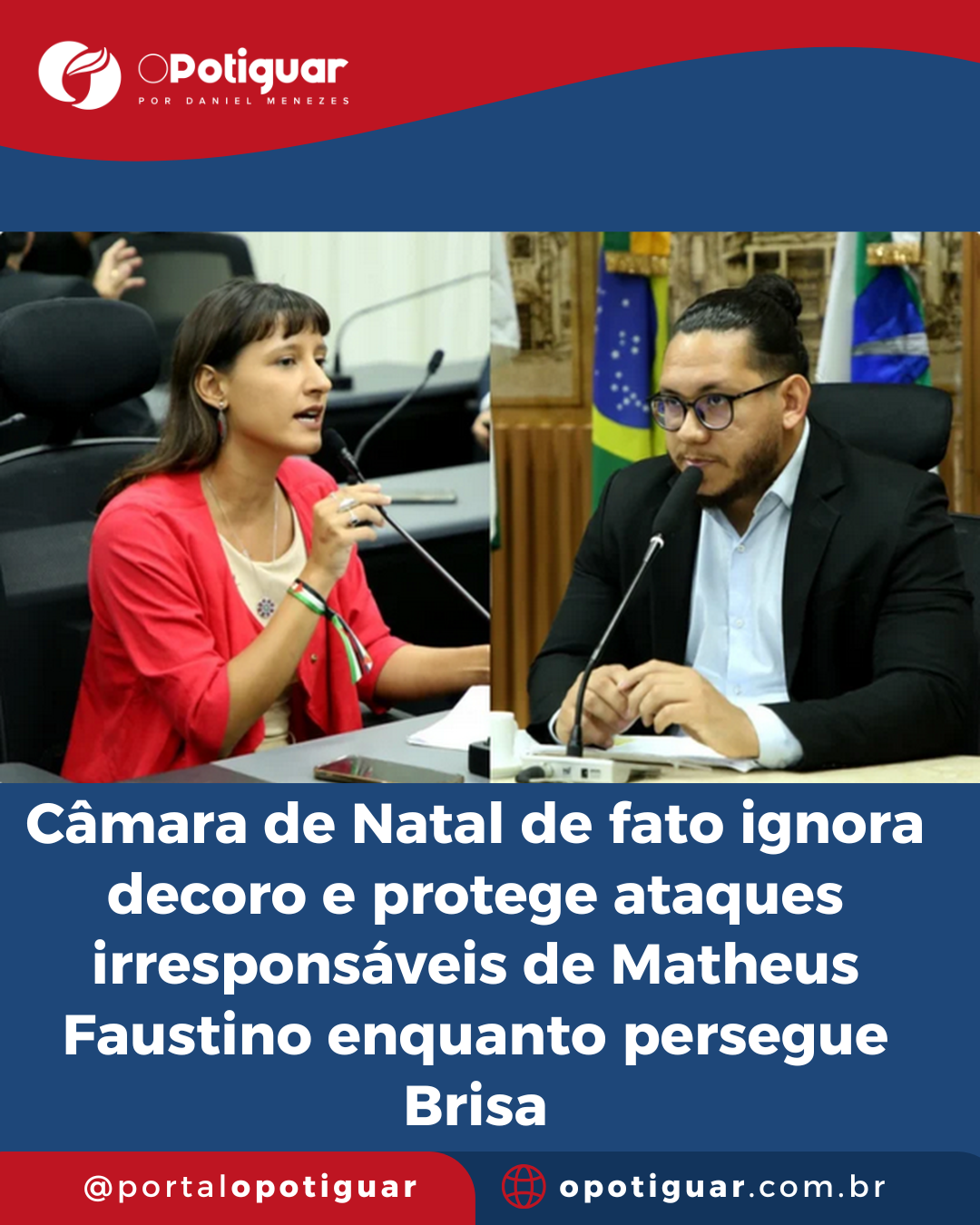 Câmara de Natal de fato ignora decoro e protege ataques irresponsáveis de Matheus Faustino enquanto persegue Brisa