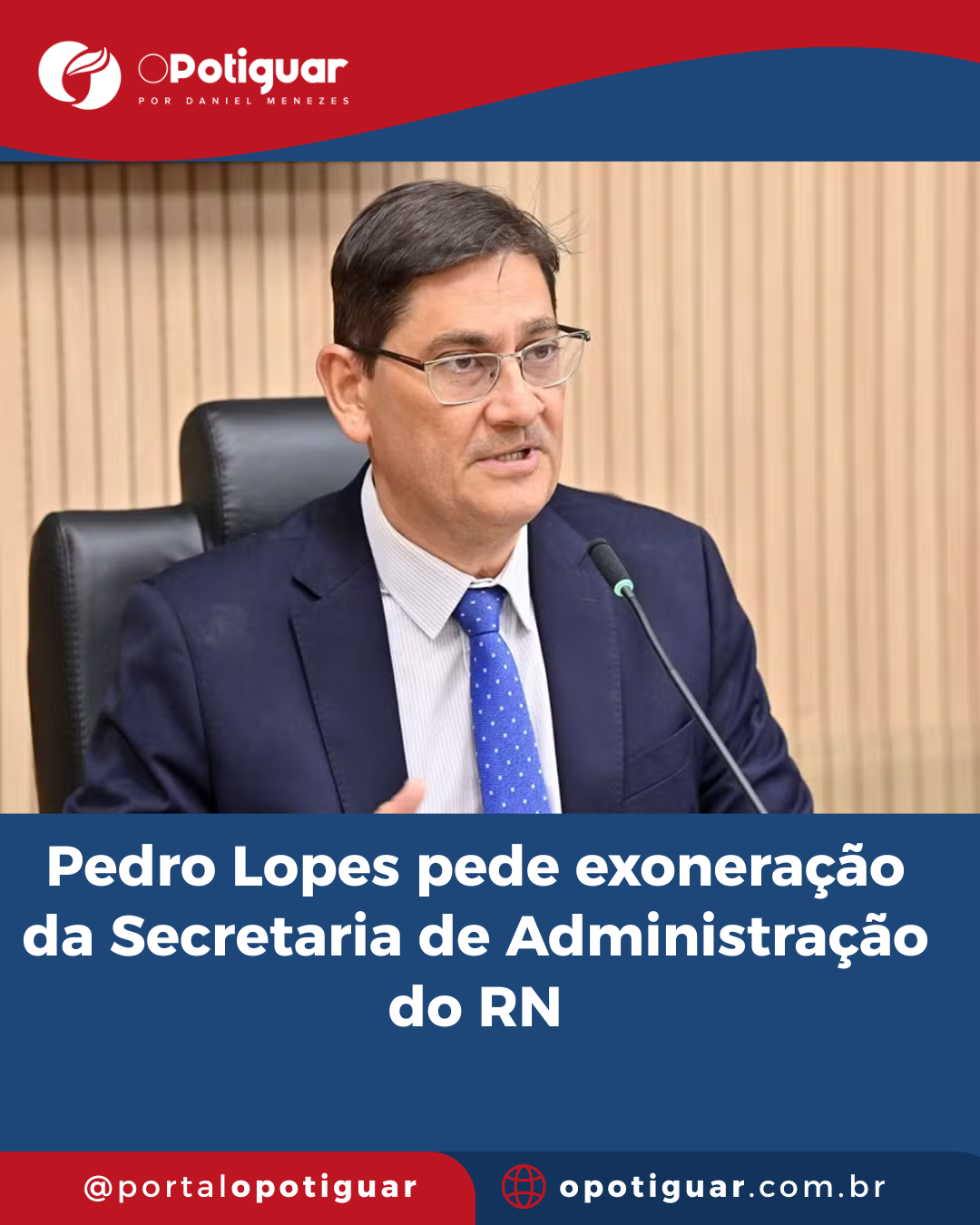 G1 RN - A governadora do Rio Grande do Norte, Fátima Bezerra (PT), demitiu Pedro Lopes do cargo secretário estadual de Administração. O ato de exoneração foi publicado no Diário Oficial do Estado desta quinta-feira (20). Ninguém foi nomeado em substituição a ele até a última atualização desta reportagem.