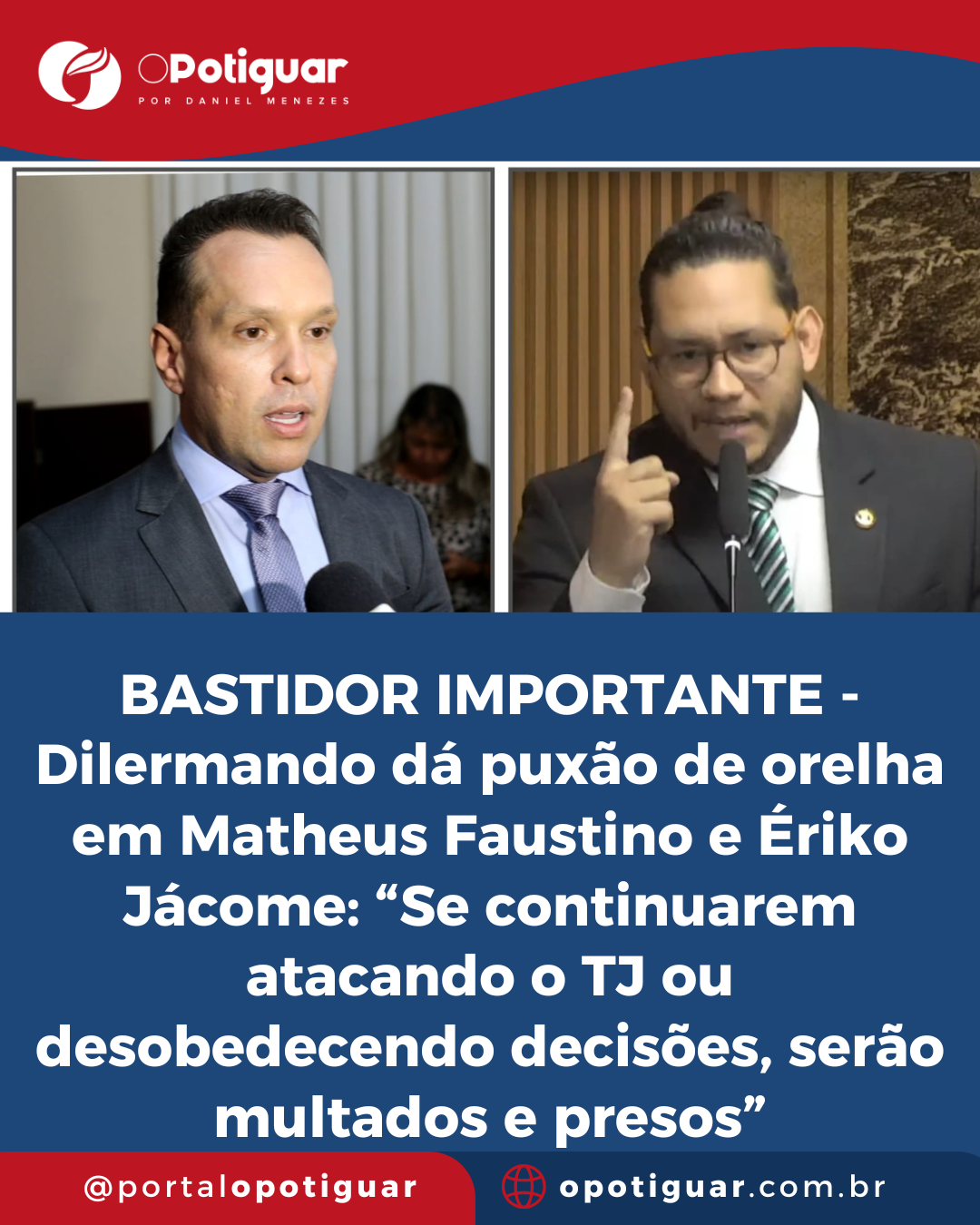 Uma reunião de bastidor entre os assessores jurídicos da Câmara Municipal de Natal e o desembargador Dilermando Motta, do Tribunal de Justiça do RN, terminou em alerta total. No encontro em que os procuradores foram despachar com o magistrado, o membro do judiciário cobrou respeito institucional após Matheus Faustino voltar a insinuar venda de sentença no TJRN — acusação considerada criminosa e um ataque direto à integridade da Corte. Dilermando também mirou o presidente da Câmara, Ériko Jácome, lembrando que ele tentou desobedecer decisões judiciais em duas ocasiões durante o processo contra a vereadora Brisa Bracchi.