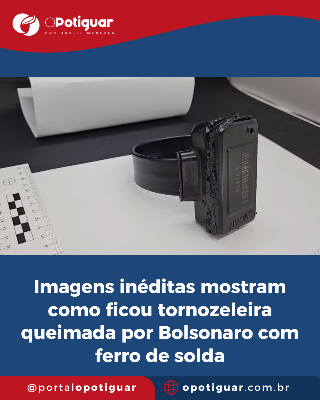 Imagens inéditas mostram como ficou tornozeleira queimada por Bolsonaro com ferro de solda