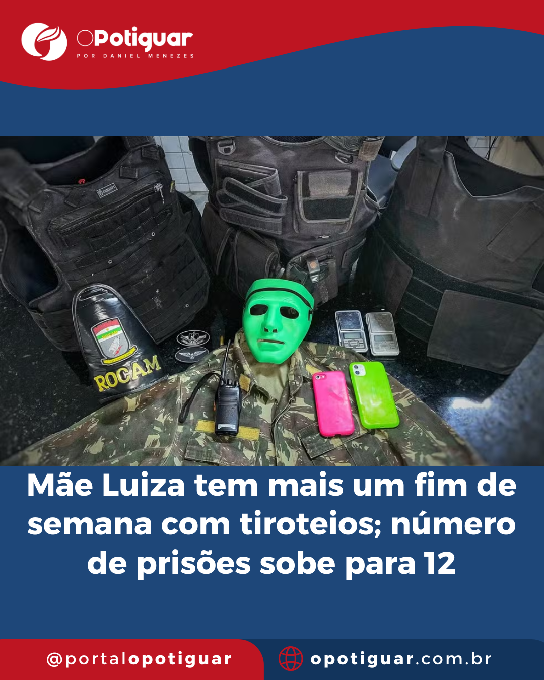 O suspeito mais recente, de 18 anos, foi preso neste domingo com três coletes a prova de balas roubados, celulares, materiais que seriam utilizados no tráfico de drogas e uma máscara.
