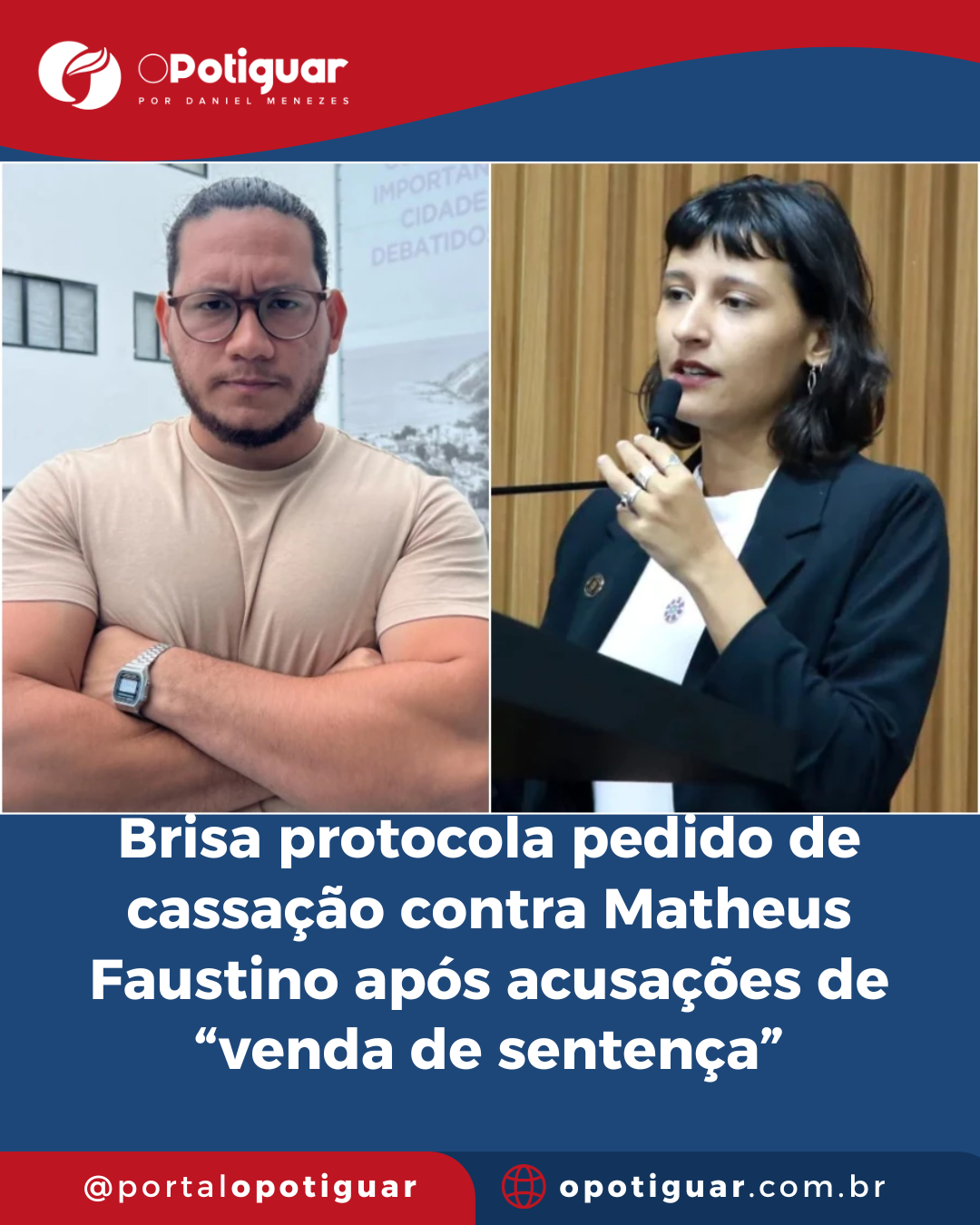 A vereadora Brisa Bracchi protocolou nesta terça-feira uma representação com pedido de cassação contra o vereador Matheus Faustino. A iniciativa foi tomada após Faustino afirmar, por duas vezes, em entrevistas a veículos de comunicação de Natal, que haveria “venda de sentença” no Tribunal de Justiça do Rio Grande do Norte envolvendo o caso Brisa. As declarações, consideradas graves e sem apresentação de provas, levaram a parlamentar a acionar formalmente a Câmara Municipal.