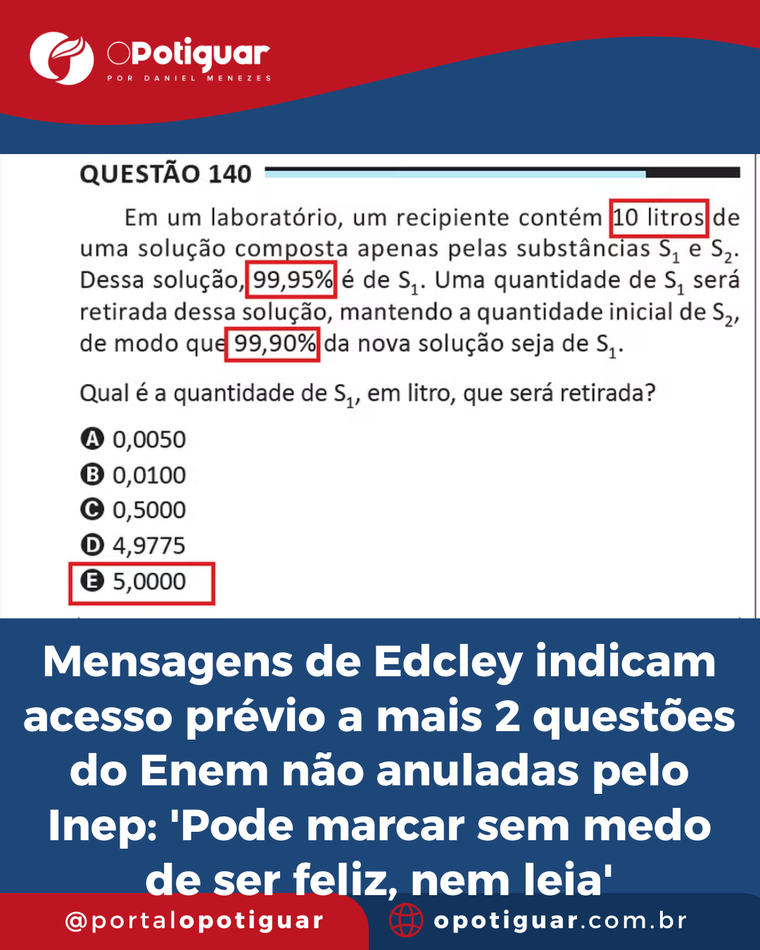Mensagens de Edcley indicam acesso prévio a mais 2 questões do Enem não anuladas pelo Inep: 'Pode marcar sem medo de ser feliz, nem leia'