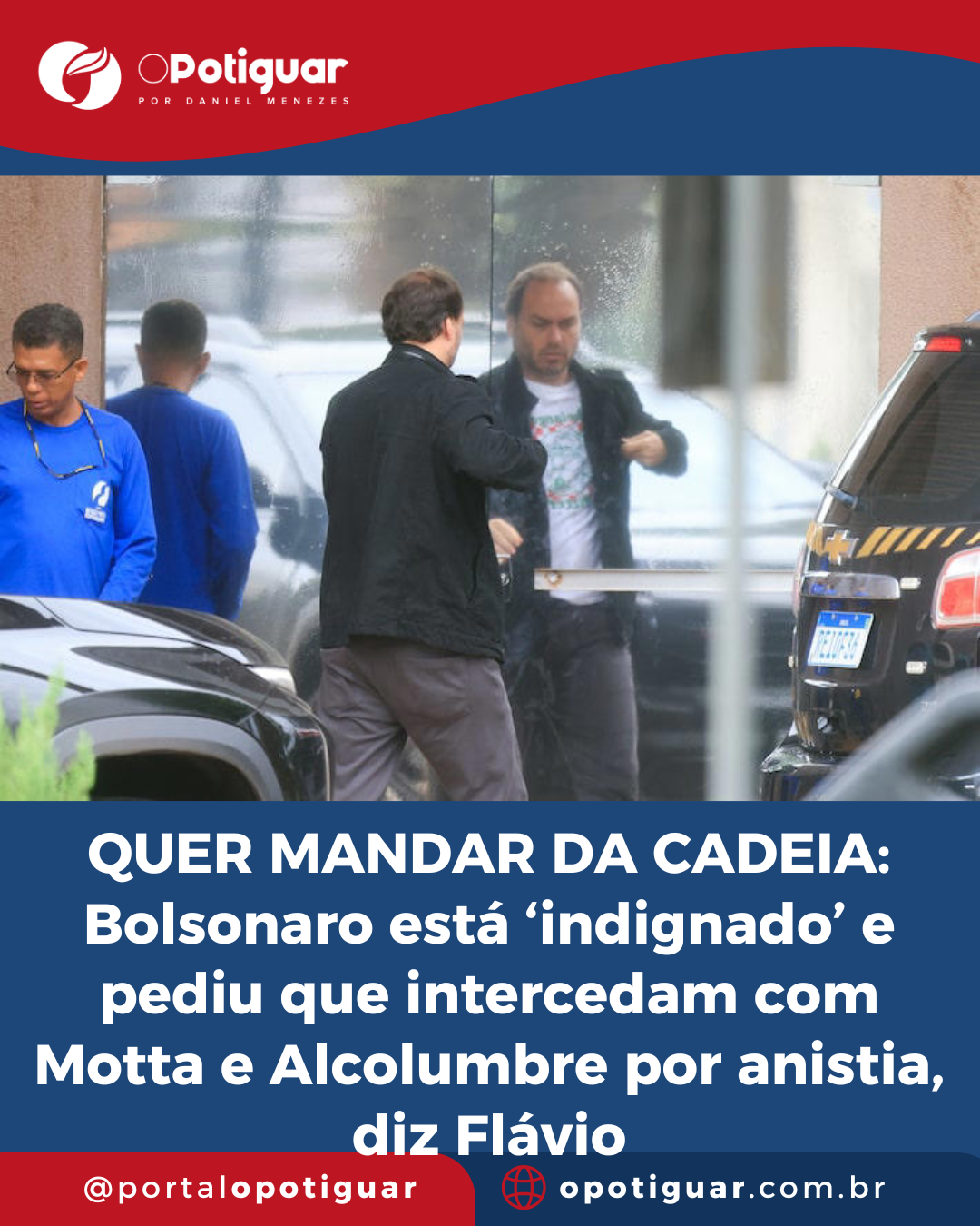 Do Estadão - BRASÍLIA – O senador Flávio Bolsonaro (PL-RJ) afirmou nesta terça-feira, 25, que o ex-presidente Jair Bolsonaro (PL) está “indignado” com o cumprimento da prisão preventiva e que pediu a ele que conversasse com os presidentes da Câmara, Hugo Motta (Republicanos-PB), e do Senado, Davi Alcolumbre (União Brasil-AP) para que pautem o projeto de anistia aos presos por envolvimento em atos golpistas.