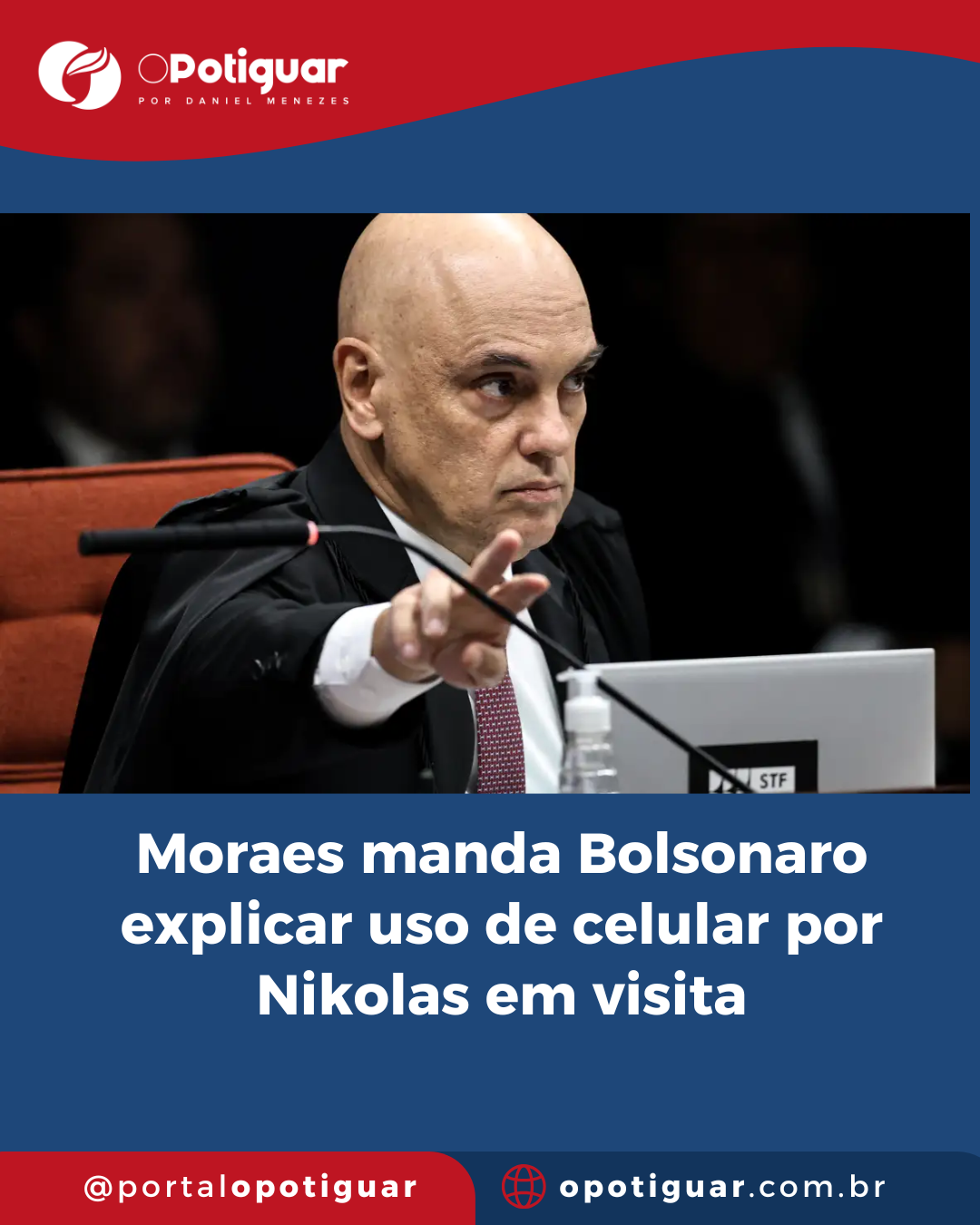 O ministro Alexandre de Moraes, do Supremo Tribunal Federal (STF), determinou que a defesa de Jair Bolsonaro explique, no prazo 24 horas, o uso de celular pelo deputado Nikolas Ferreira (PL-MG) durante visitar realizada ao ex-presidente no dia 21 de novembro, quando ele ainda cumpria prisão domiciliar.