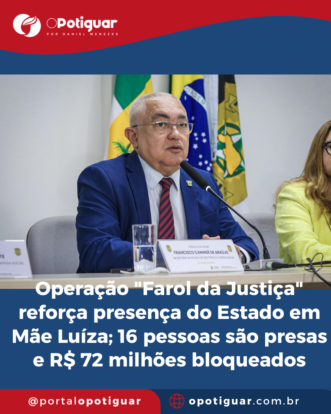 A Secretaria de Estado da Segurança Pública e da Defesa Social (SESED) deflagrou nesta quarta-feira (26) a operação "FAROL DA JUSTIÇA", uma ação integrada de enfrentamento à atuação de organizações criminosas na Zona Leste de Natal, com foco no bairro de Mãe Luíza. Dezesseis pessoas foram presas e R$ 72 milhões bloqueados pela Justiça, além de armas e drogas apreendidas.
