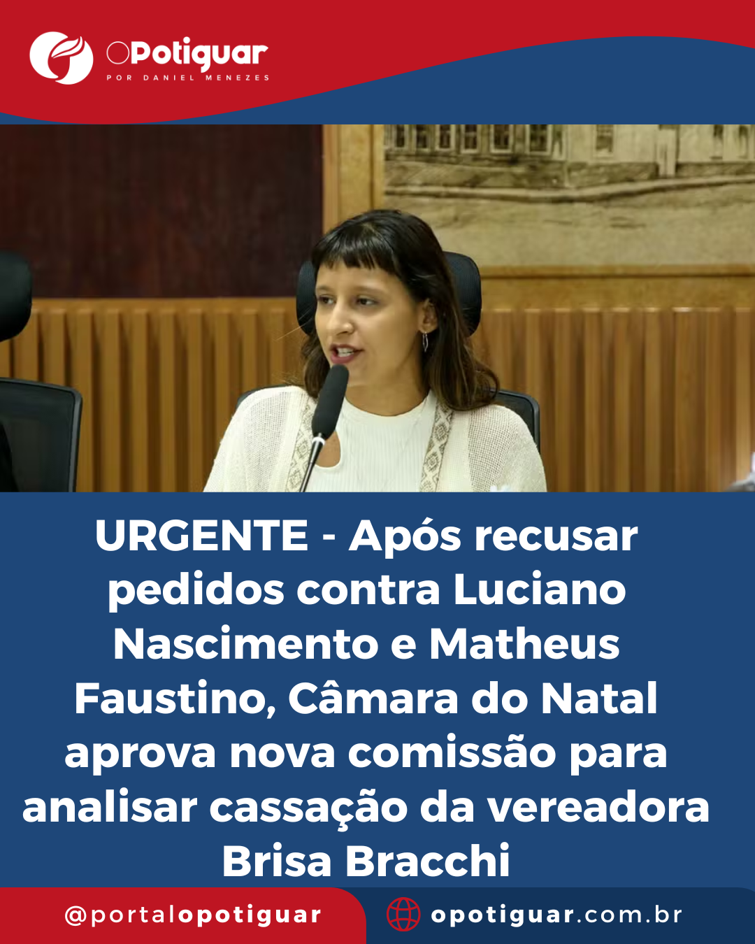 A câmara municipal do Natal acaba de aprovar a abertura de nova comissão processante por pedido de cassação contra a vereadora Brisa Bracchi, a partir do pedido do vereador Matheus Faustino. Antes, o mesmo plenário recusou que o processo continuasse na comissão de ética da casa.