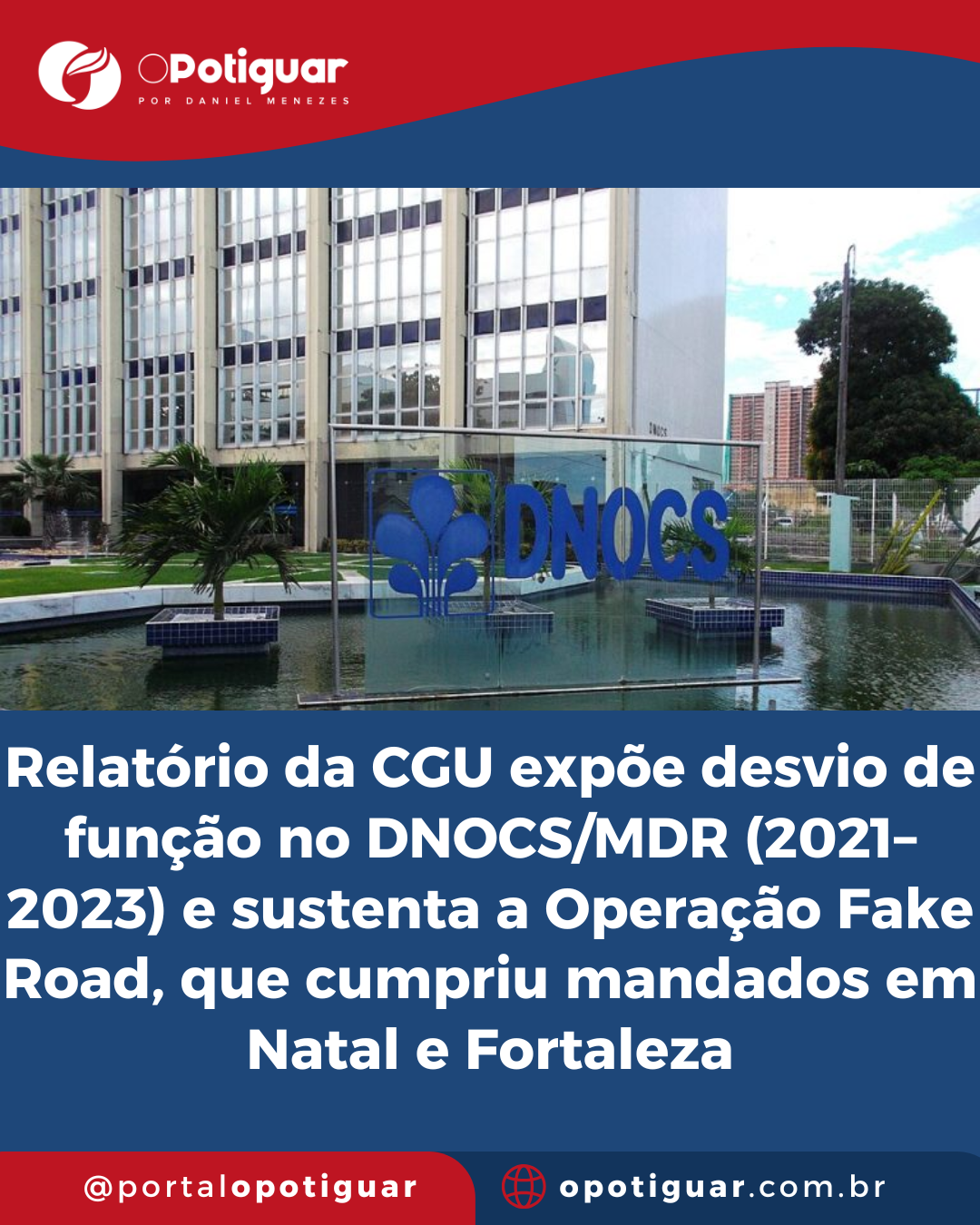 Relatório da CGU expõe desvio de função no DNOCS/MDR (2021–2023) e sustenta a Operação Fake Road, que cumpriu mandados em Natal e Fortaleza