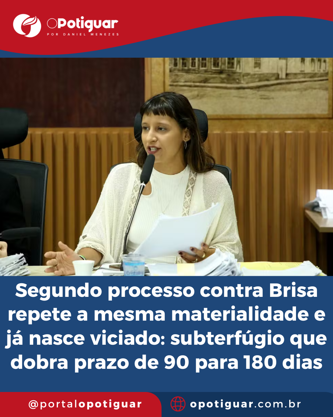 A decisão da Câmara Municipal do Natal de abrir um segundo processo de cassação contra a vereadora Brisa Bracchi (PT) já provoca burburinho entre assessores jurídicos. Para advogados que atuam na defesa da parlamentar, o novo procedimento é um subterfúgio criado após o Legislativo não conseguir concluir o primeiro processo dentro do prazo legal. Ao repetir praticamente a mesma materialidade do processo original, apenas alterando elementos formais, o novo rito já começa “viciado”, na avaliação dos juristas, por tentar contornar o limite dos 90 dias e estender, na prática, o tempo de cassação para 180 dias.