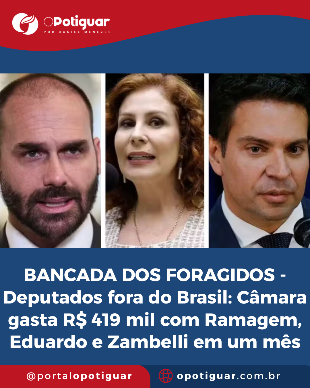 BANCADA DOS FORAGIDOS - Deputados fora do Brasil: Câmara gasta R$ 419 mil com Ramagem, Eduardo e Zambelli em um mês