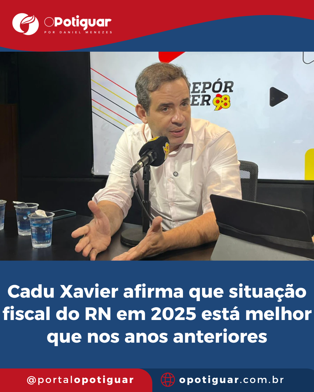 O secretário de Estado da Fazenda, Cadu Xavier, afirmou nesta terça-feira (2), em entrevista ao Repórter 98, que o Rio Grande do Norte encerra 2025 com “situação muito melhor” do que a encontrada pela atual gestão em 2019. Segundo Cadu, o governo concluirá o ano mantendo o calendário de pagamentos e garantindo o 13º salário dos servidores.