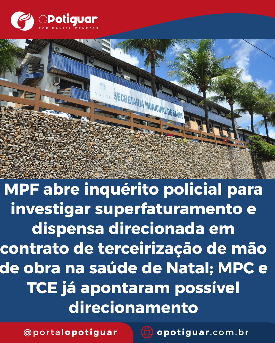 MPF abre inquérito policial para investigar superfaturamento e dispensa direcionada em contrato de terceirização de mão de obra na saúde de Natal; MPC e TCE já apontaram possível direcionamento