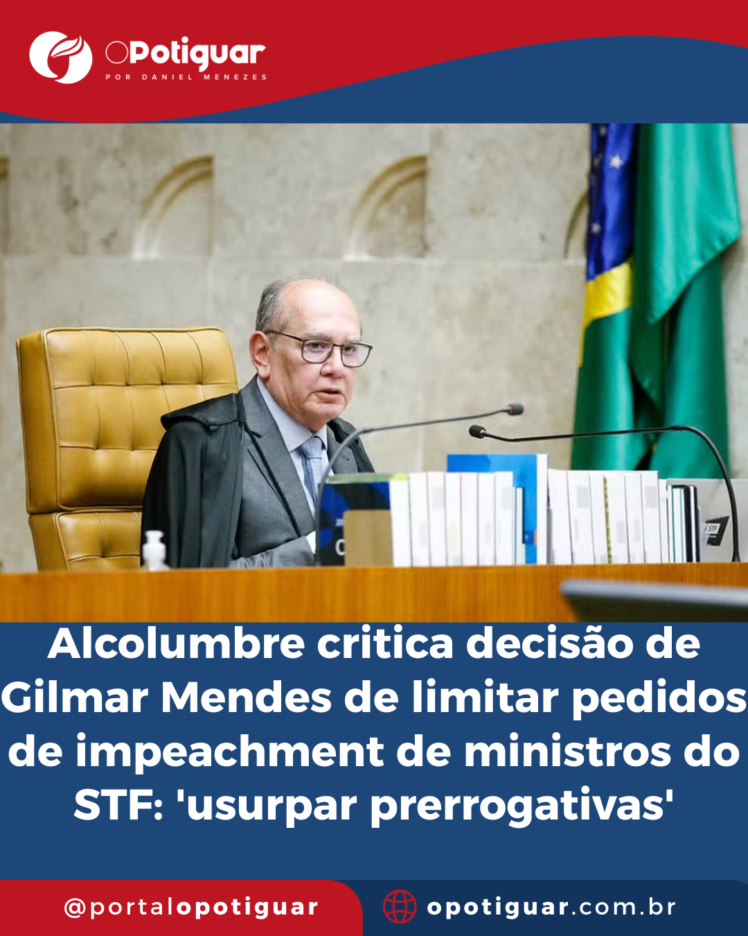 G1 - O presidente do Senado Federal, Davi Alcolumbre (União-AP), criticou a decisão do ministro do Supremo Tribunal Federal (STF) Gilmar Mendes de limitar apenas à Procuradoria-Geral da República (PGR) a possibilidade de denunciar ministros da Corte.