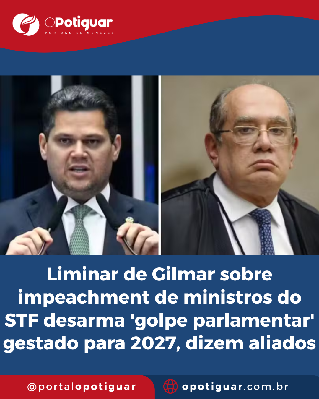 G1 - A decisão do ministro Gilmar Mendes desta quarta-feira (3), que determinou que apenas a Procuradoria-Geral da República (PGR) pode propor o impeachment de ministros do Supremo Tribunal Federal (STF), segundo interlocutores, foi para "desarmar o golpe parlamentar" contra a Corte que via sendo gestado para 2027.