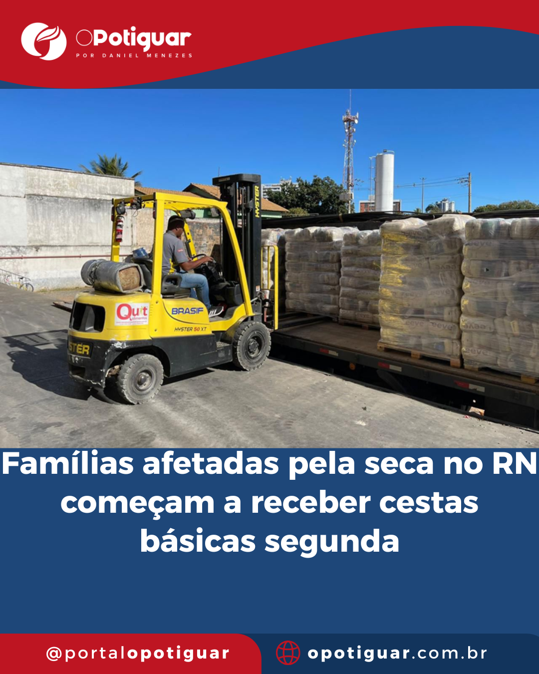 O Governo Federal começa a distribuição de cestas básicas para famílias afetadas pela seca, no Rio Grande do Norte, a partir desta segunda-feira (8). A ação articulada pelo Governo do Estado, a partir das demandas dos gestores municipais, prevê a distribuição em cota única de 30.815 unidades de cestas de alimentos e integra uma série de medidas de convivência com a seca.