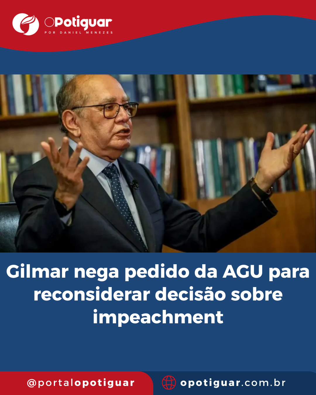 O ministro Gilmar Mendes, do Supremo Tribunal Federal (STF), negou nesta quinta-feira 4 o pedido da Advocacia-Geral da União (AGU) para reconsiderar a decisão na qual entendeu que somente a Procuradoria-Geral da República (PGR) pode entrar com pedidos de impeachment de integrantes da Corte.