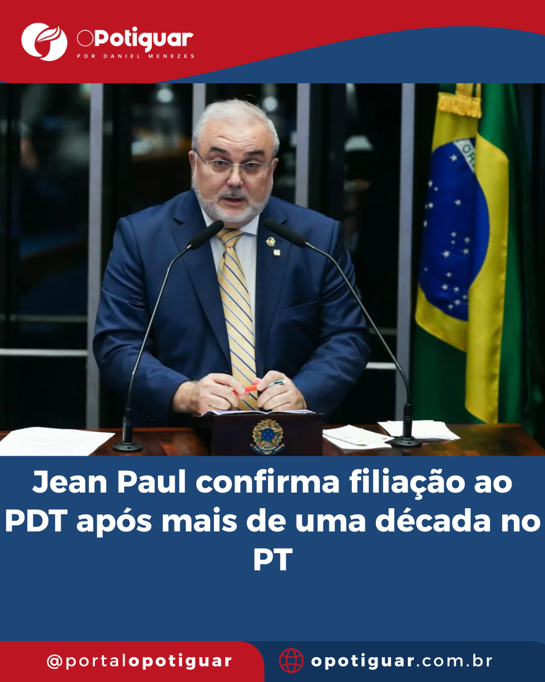 Jean Paul Prates já vinha sinalizando o afastamento da legenda, após críticas à condução partidária no Estado e à centralização de decisões. No histórico recente, o ex-senador ocupou a cadeira no Senado entre 2019 e 2023 e presidiu a Petrobras até 2024.