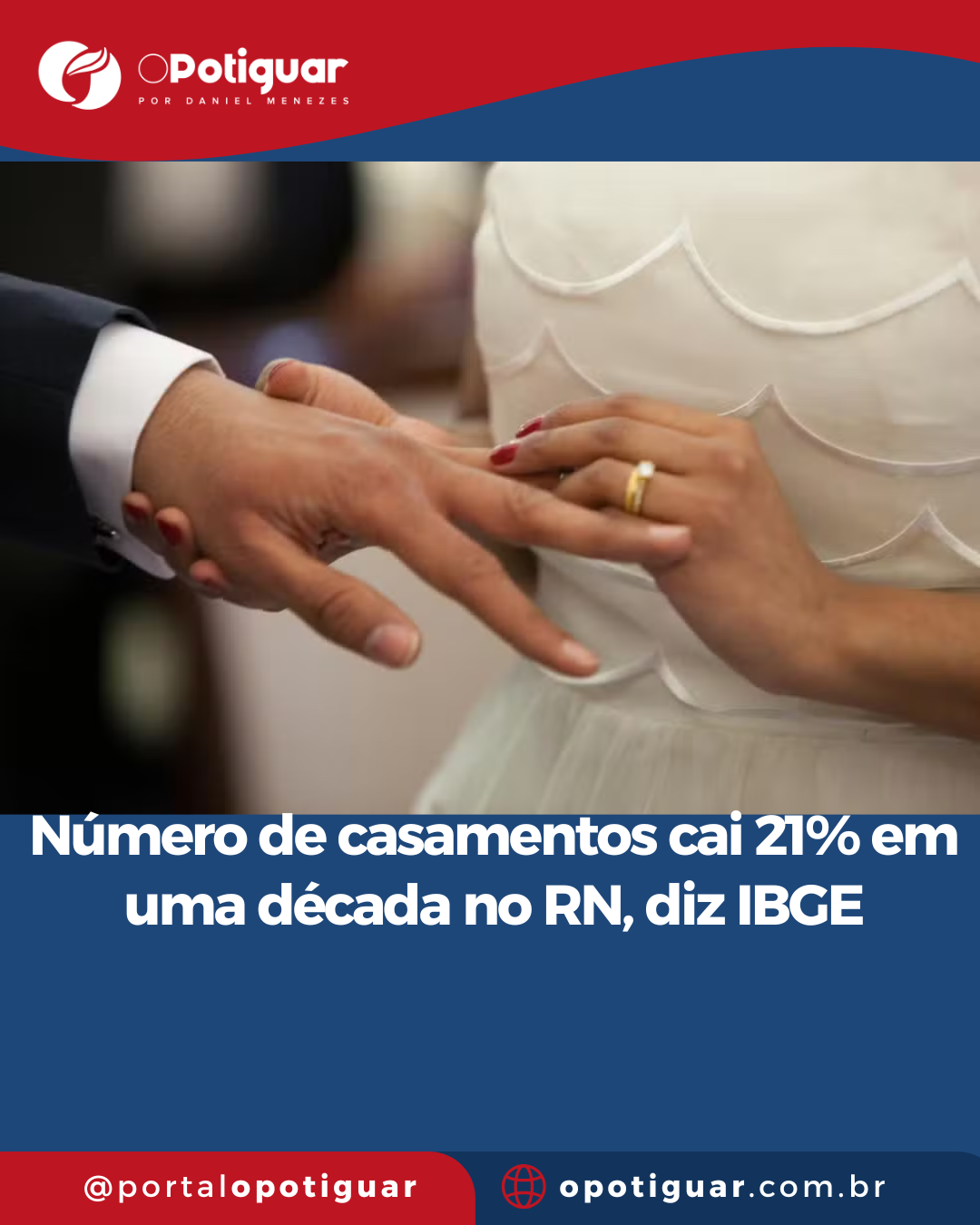 Com os resultados, a taxa de nupcialidade legal foi calculada em 4,6 no RN em 2024, quinta menor do país. O indicador aponta que a cada mil pessoas de 15 anos ou mais de idade, 4,6 pessoas se casaram no estado.