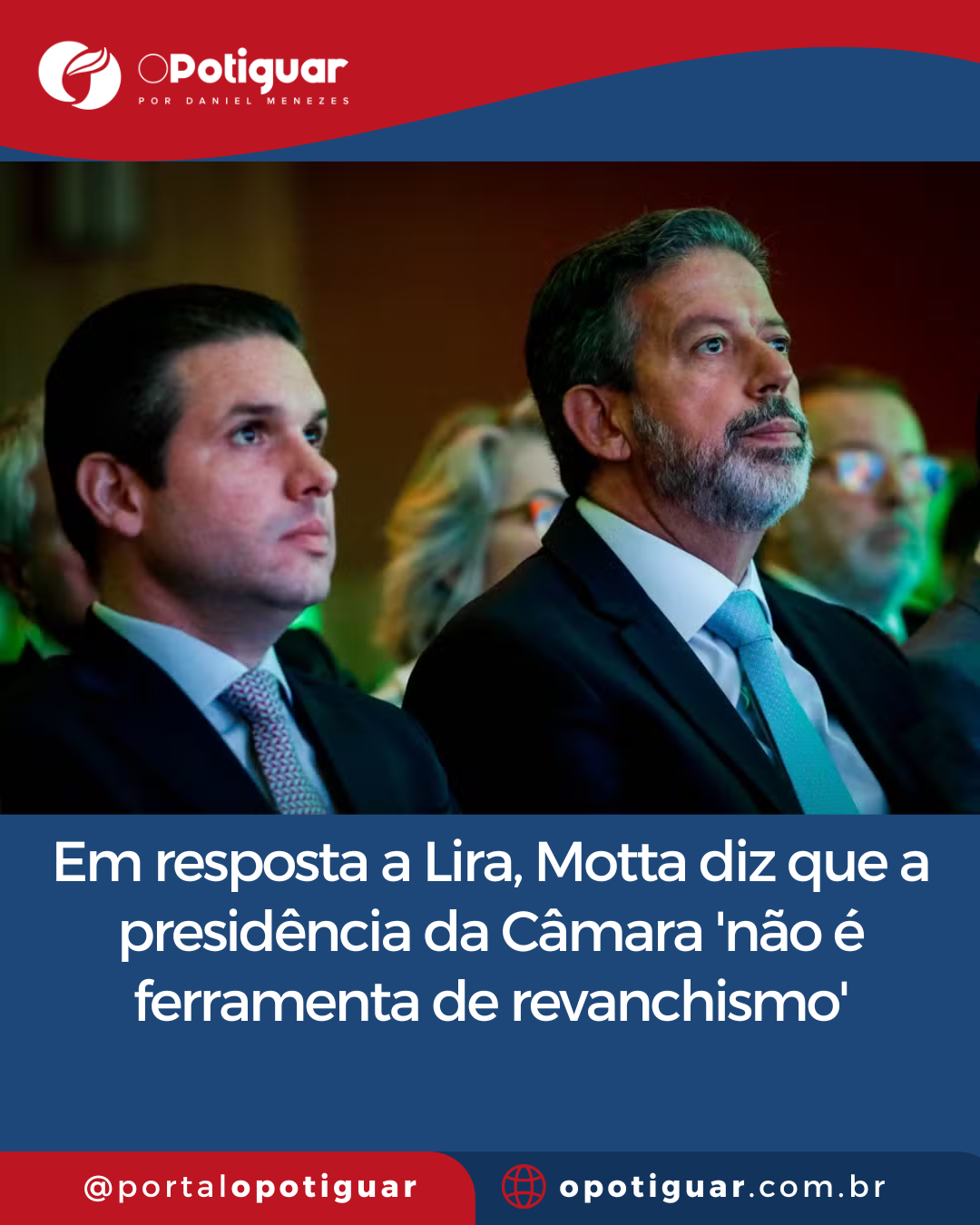 G1 - Em resposta às críticas feitas pelo deputado Arthur Lira (PP-AL) sobre sua condução na votação de cassação do deputado Glauber Braga (PSOL-RJ), o presidente da Câmara, Hugo Motta (Republicanos-PB), disse que a presidência da Casa não é "ferramenta de revanchismo".