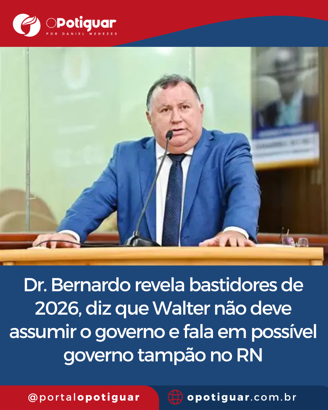 Dr. Bernardo revela bastidores de 2026, diz que Walter não deve assumir o governo e fala em possível governo tampão no RN