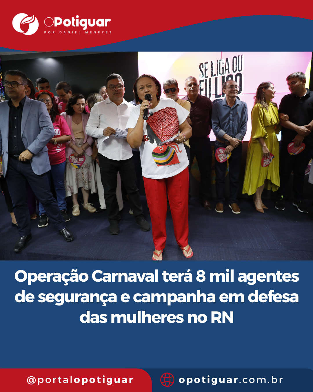O Governo do Rio Grande do Norte lançou nesta quinta-feira (12) a Operação Carnaval 2026, uma ação que vai integrar as forças de segurança pública e a equipe da Secretaria de Estado da Mulher, Juventude, Igualdade Racial e Direitos Humanos (Semjidh) na missão de garantir segurança para os foliões em todas as regiões do estado, especialmente para as mulheres que contarão com o apoio da campanha de proteção e defesa “Se liga ou eu ligo 180”.