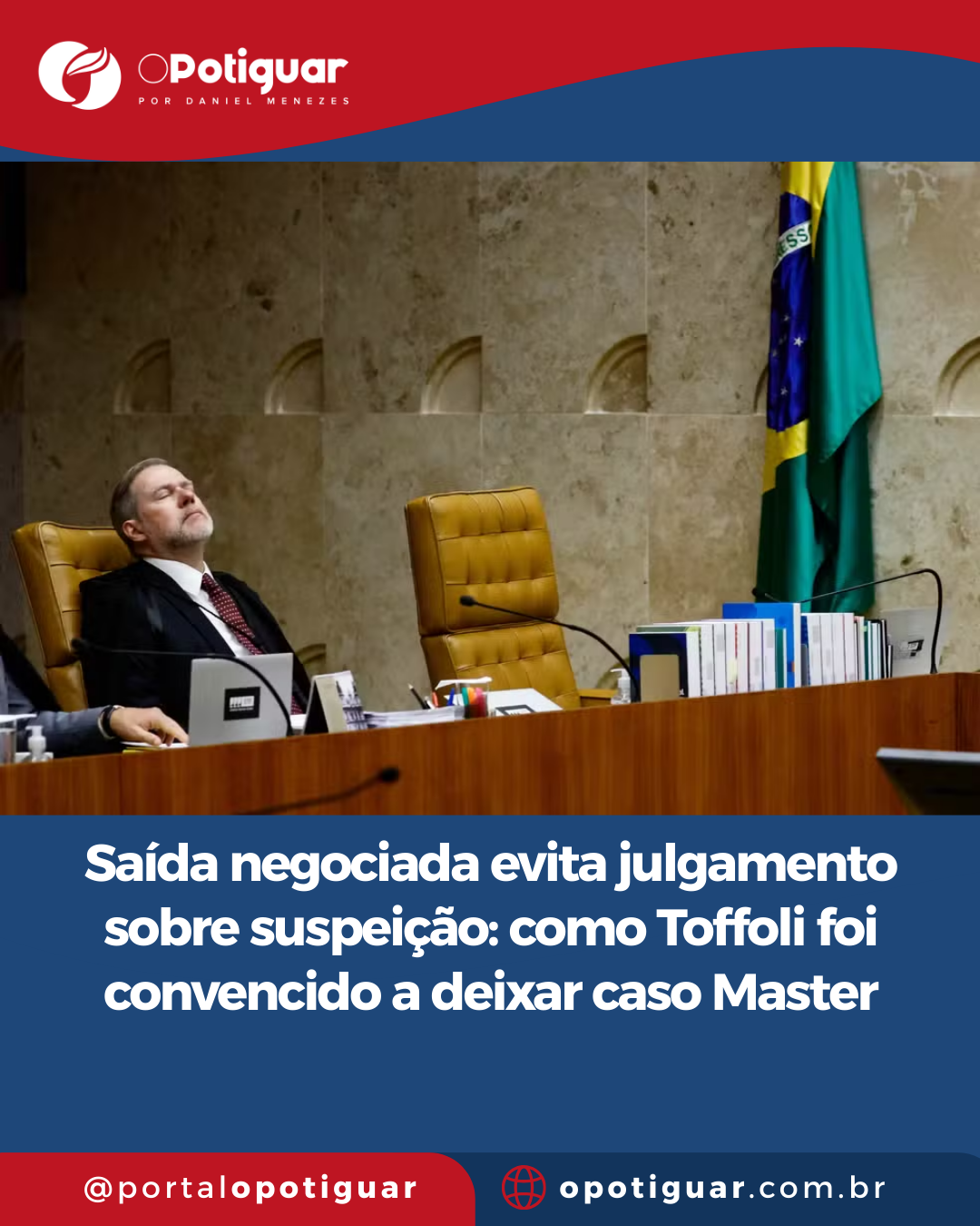 Depois de uma longa conversa, Toffoli foi convencido de que precisava deixar o caso. A saída construída foi descrita como a única politicamente possível: ele não seria declarado suspeito ou impedido, mas se afastaria da relatoria.