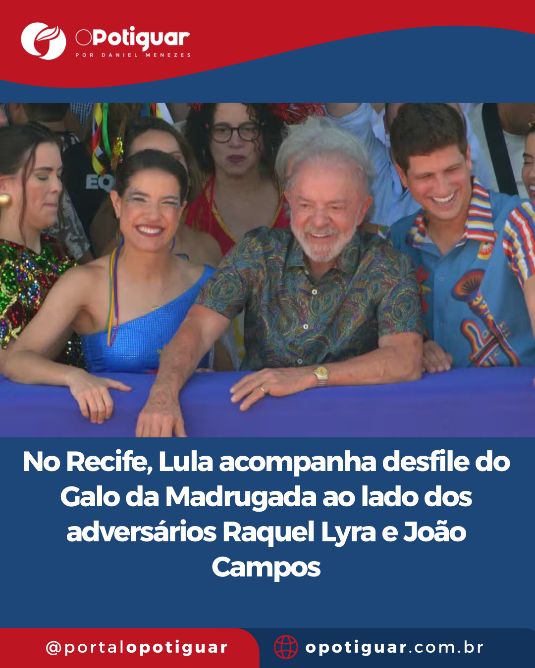 No Recife, Lula acompanha desfile do Galo da Madrugada ao lado dos adversários Raquel Lyra e João Campos