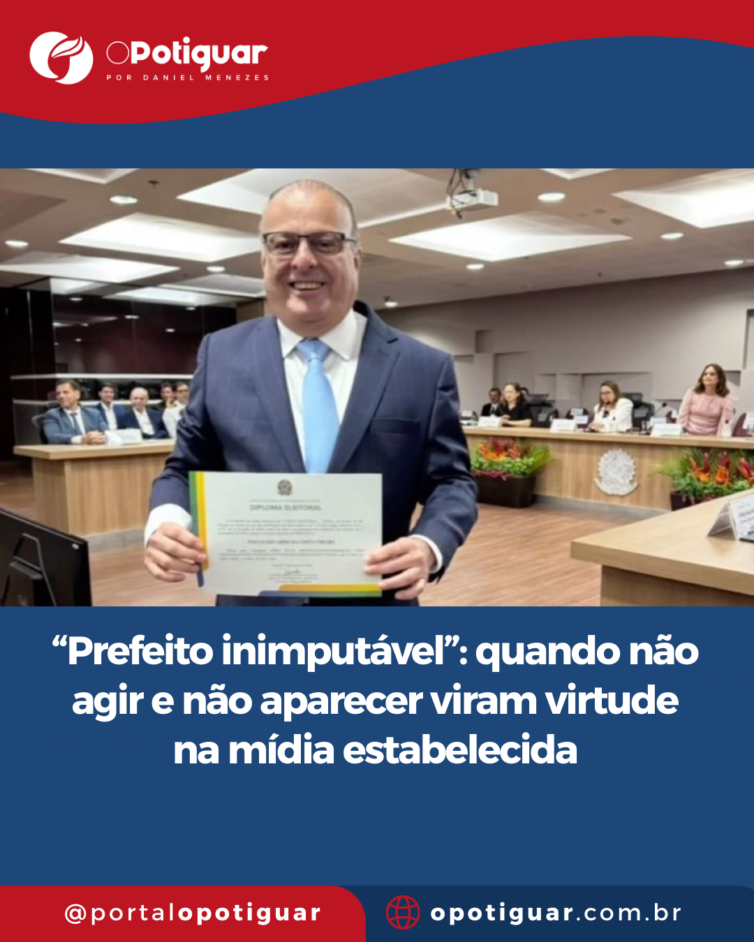 Parte da mídia estabelecida em Natal parece empenhada em consolidar uma figura curiosa: a do prefeito inimputável, aquele que não pode ser cobrado, que não é responsabilizado por crises e cuja ausência é tratada como inteligência estratégica. Não sair do gabinete vira sinal de força. Não visitar áreas alagadas é descrito como postura institucional. Não convocar reuniões públicas diante de problemas concretos é interpretado como serenidade administrativa. No fim, constrói-se a imagem de um “não-prefeito” elogiado exatamente por não aparecer, por não liderar, por não assumir protagonismo nos momentos mais delicados. Quando surge, muitas vezes o faz por meio de vídeos produzidos com recursos tecnológicos - Inteligência Artificial - que distanciam ainda mais a figura pública da realidade concreta enfrentada pela população.