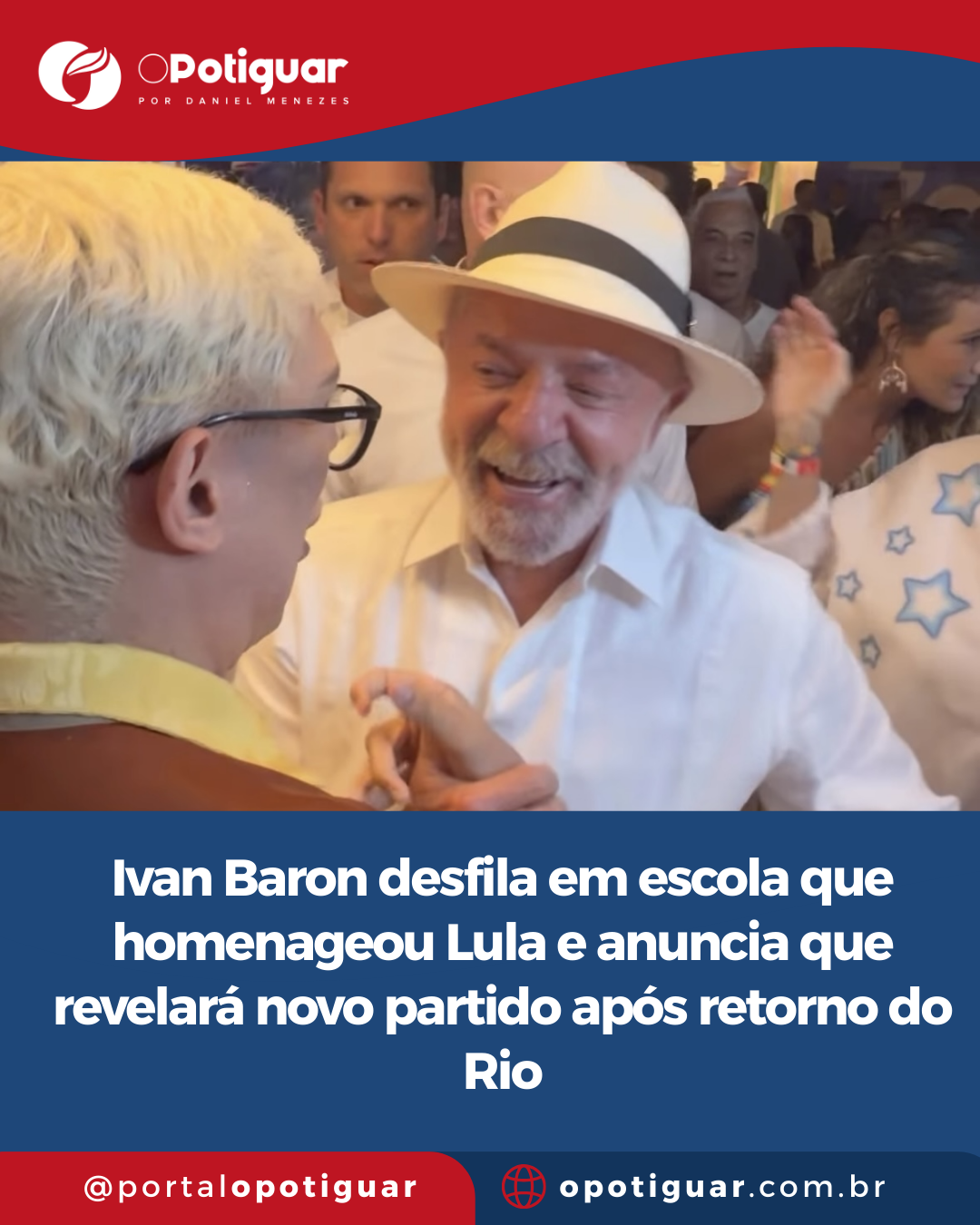 O influenciador potiguar Ivan Baron marcou presença no desfile da escola de samba que prestou homenagem ao presidente Lula no Rio de Janeiro e aproveitou o momento para sinalizar novos passos em sua trajetória política. Em meio à repercussão do evento, Ivan afirmou que, ao retornar do Rio, anunciará oficialmente sua nova filiação partidária, encerrando o período de indefinição após sua recente saída do MDB. A declaração reforça que o ativista pretende continuar atuando no debate público, agora em outra legenda, mantendo o protagonismo que conquistou nas redes e no cenário político local.
