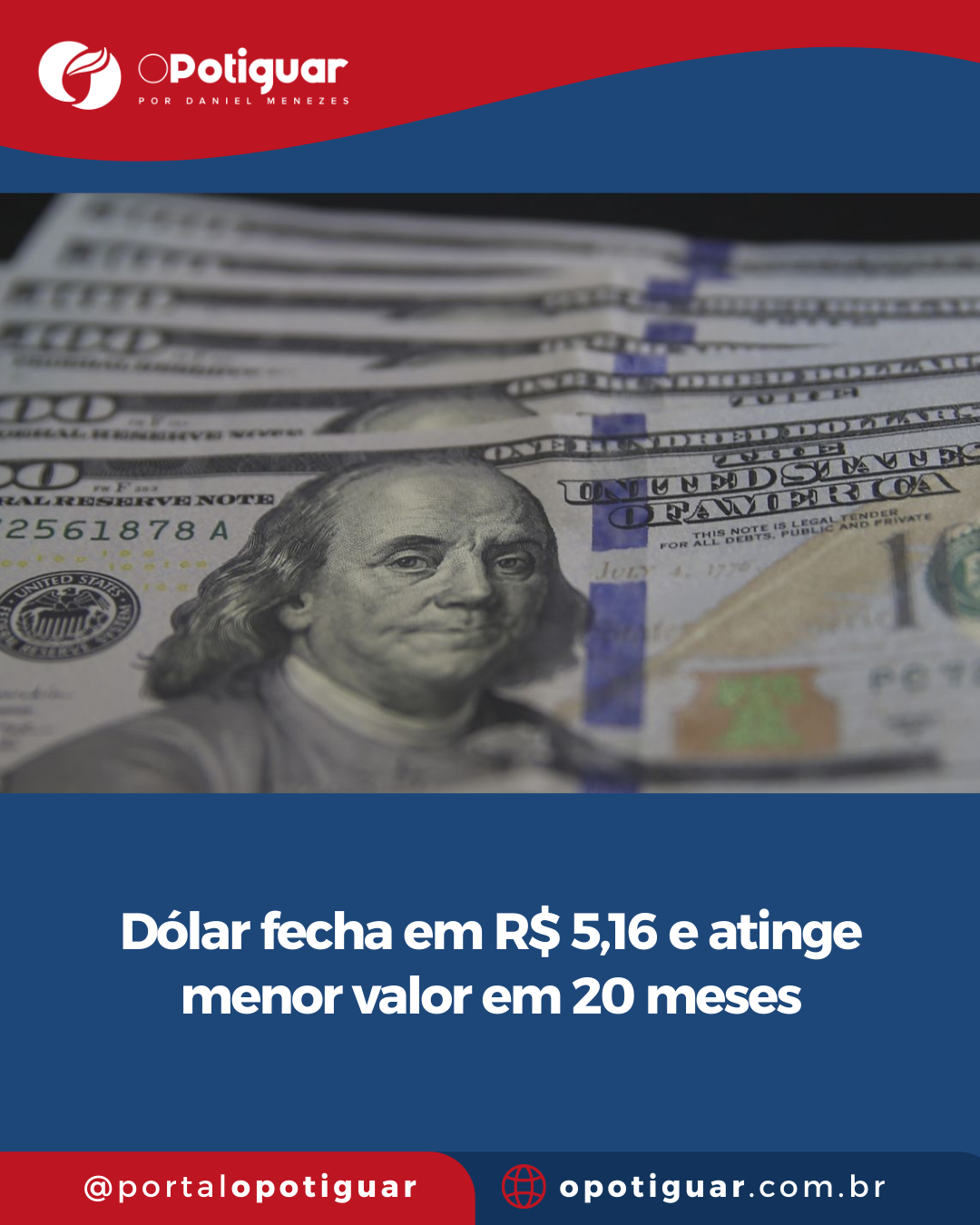 Dólar fecha em R$ 5,16 e atinge menor valor em 20 meses