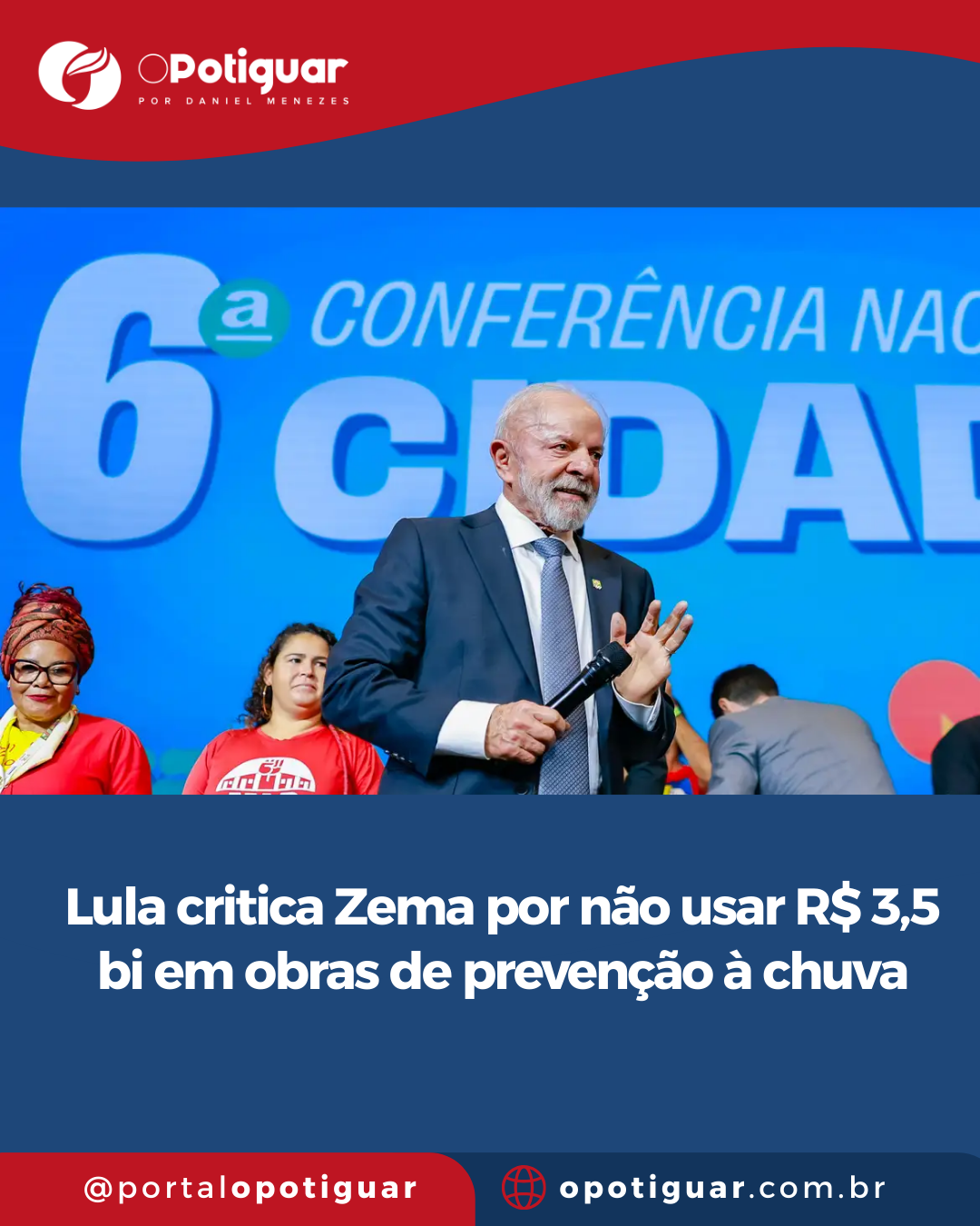 O presidente Luiz Inácio Lula da Silva criticou, nesta sexta-feira (27), o governador de Minas Gerais, Romeu Zema, por não ter apresentado projetos de obras e prevenção a desastres climáticos, mesmo contando com recursos da ordem de R$ 3,5 bilhões do PAC. Ao discursar, no encerramento da 6ª Conferência Nacional das Cidades, em Brasília, Lula disse, também, que os desastres causados pelas enchentes são resultados do descaso histórico com o povo pobre do país.