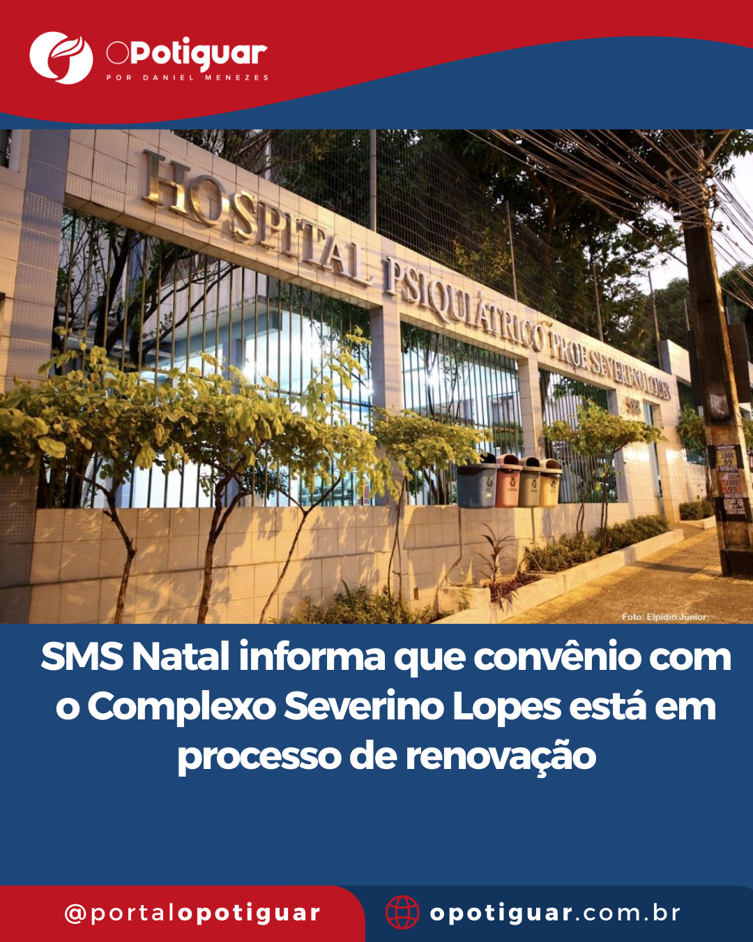 Heitor Gregório - A Secretaria Municipal de Saúde de Natal informou que o convênio com o Complexo Prof. Severino Lopes, utilizado para internações psiquiátricas na rede, segue em processo de renovação. Segundo a pasta, os atendimentos para casos de urgência e emergência psiquiátrica no município continuam sendo realizados normalmente nas unidades de pronto atendimento.