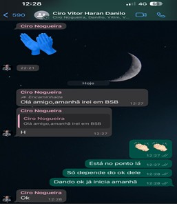 Ciro Nogueira, ex-ministro da Casa Civil de Jair Bolsonaro, não é investigado no inquérito. Mas a Carbono Oculto 86 (o número faz referência ao DDD de Teresina) identificou um grupo de WhatsApp do qual o senador participou, intitulado Ciro Vitor Haran Danilo. Era uma referência ao nome dos integrantes: além do próprio Ciro e da dupla de empresários Haran e Danillo, estava lá Victor Linhares de Paiva, tratado informalmente como Vitinho. Ele é uma figura próxima de Ciro. Foi seu assessor no Senado, exerceu mandato de vereador em Teresina pelo PP e também está na lista de denunciados pelo Ministério Público do Piauí, acusado de lavar dinheiro para o esquema.