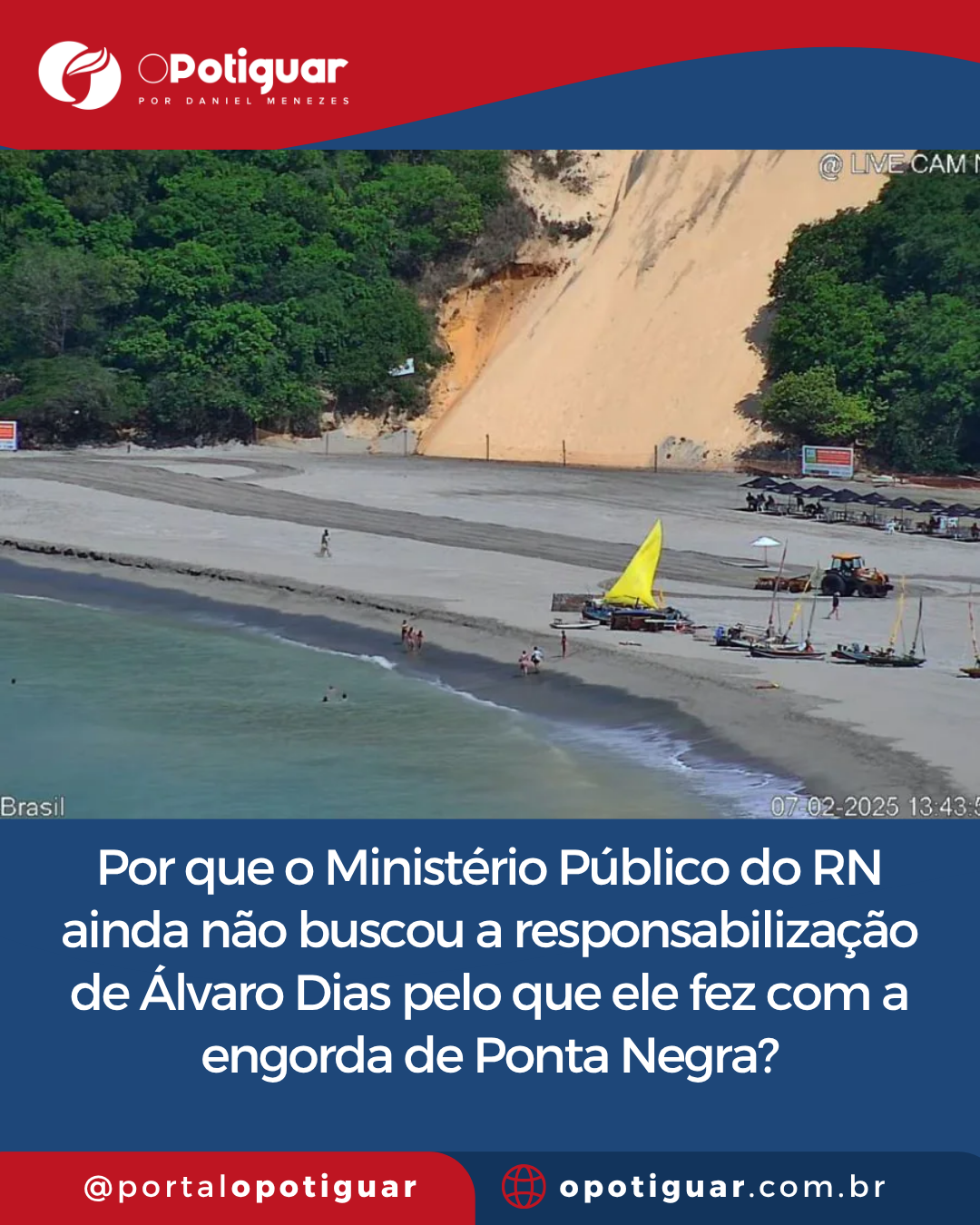Além disso, imagens e relatos reforçam que parte da areia adicionada já foi novamente levada pelo mar, especialmente nas imediações do Morro do Careca, principal cartão-postal que a obra prometia proteger. Diante desse quadro, cresce a cobrança sobre a atuação do Ministério Público do Rio Grande do Norte, que ainda não avançou na responsabilização dos agentes envolvidos. A omissão chama atenção sobretudo quando comparada a episódios anteriores, como a condução de termos de ajustamento de conduta na terceirização da saúde de Natal, mesmo diante de alertas técnicos do Tribunal de Contas do Estado do Rio Grande do Norte e do Ministério Público de Contas. O caso da engorda de Ponta Negra reúne elementos que, no mínimo, justificariam investigação rigorosa e a ausência de respostas institucionais levanta questionamentos sobre o cumprimento do papel fiscalizador diante de um problema de grande impacto urbano e ambiental.