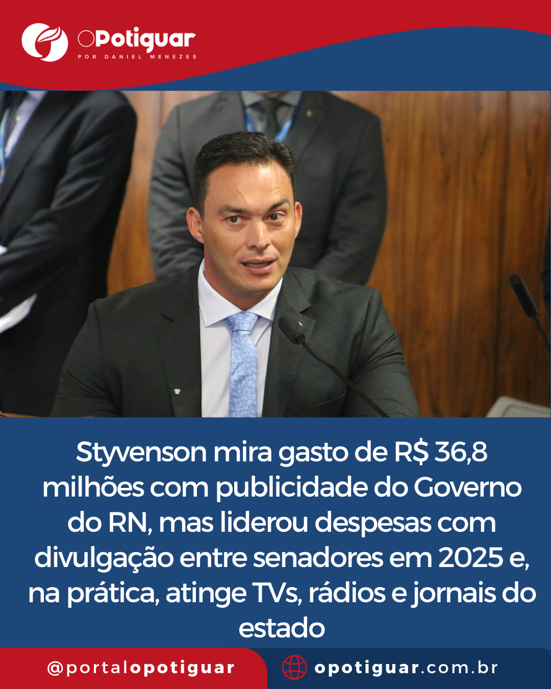 Styvenson mira gasto de R$ 36,8 milhões com publicidade do Governo do RN, mas liderou despesas com divulgação entre senadores em 2025 e, na prática, atinge TVs, rádios e jornais do estado