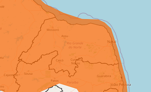 O Instituto Nacional de Meteorologia (Inmet) publicou um alerta de chuvas intensas para todas as cidades do Rio Grande do Norte. O aviso, com grau de severidade classificado como perigo, teve início às 10h20 deste domingo (12) e segue válido até as 10h da segunda-feira (13). [Atualizado às 12h] Posteriormente, o aviso foi renovado para às 23h59, ainda da segunda-feira.