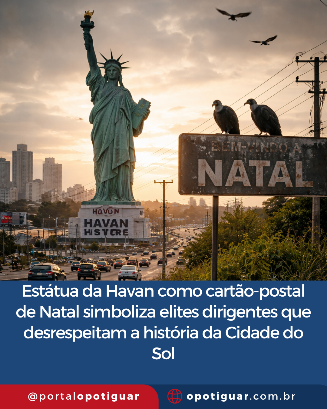 A instalação da estátua da Havan na entrada de Natal acabou se transformando em mais do que uma discussão estética. O monumento simboliza uma desconexão entre parte das elites dirigentes e a identidade cultural da cidade. Em vez de valorizar elementos locais, a escolha por uma réplica de um ícone estrangeiro éreflexo de uma mentalidade que não respeita o planejamento urbano e o direito à paisagem. Agora temos na entrada de Natal, o cartão postal bizarro estabelecido como o que (não) temos para mostrar.