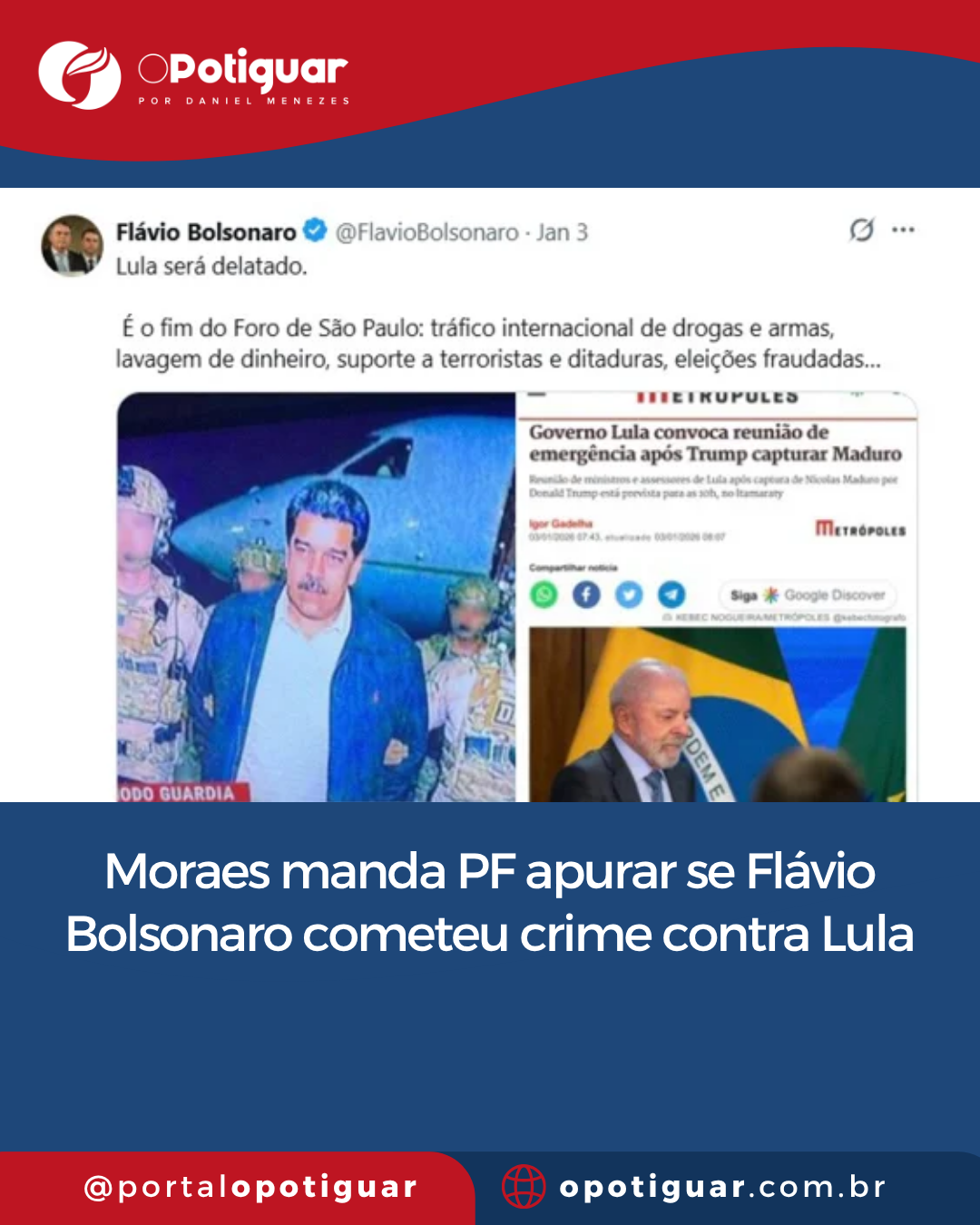 Metrópoles - O ministro Alexandre de Moraes (STF) determinou a instauração de inquérito para investigar o senador Flávio Bolsonaro (PL). A apuração buscará esclarecer se o parlamentar cometeu crime de injúria contra o presidente Lula em uma postagem, nas redes sociais.