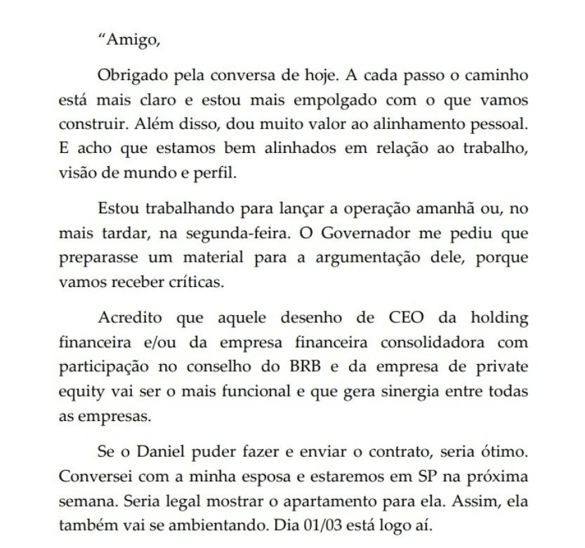 O material abre um flanco sensível: enquanto a operação era estruturada e defendida politicamente, o então presidente do BRB, Paulo Henrique Bezerra Rodrigues Costa, mantinha tratativas paralelas para receber vantagens pessoais milionárias.