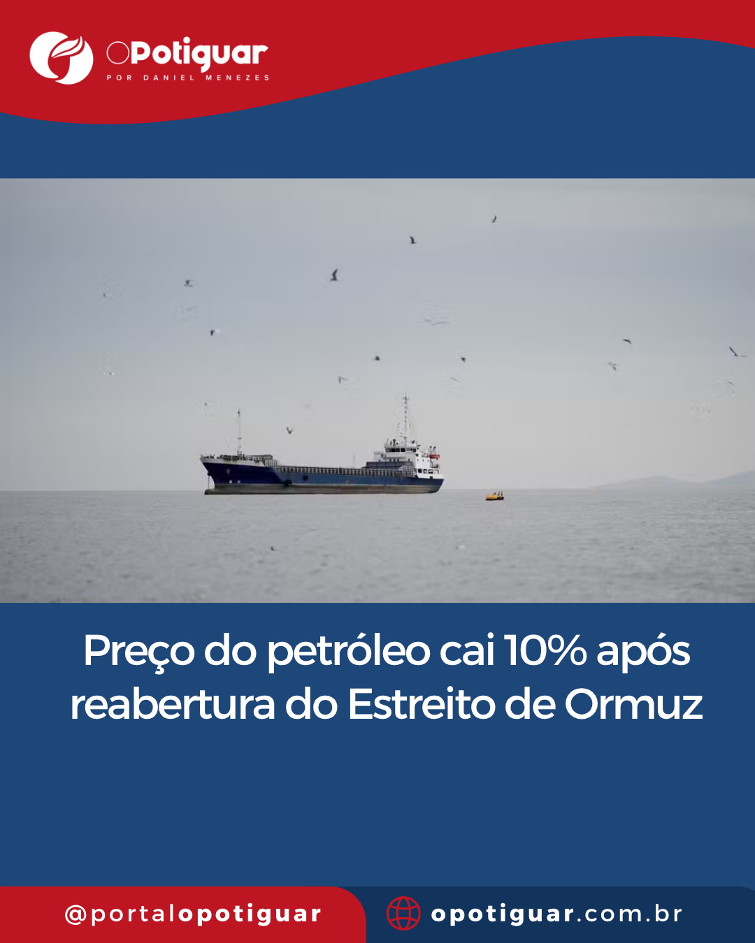 G1 - O preço do petróleo caiu 10%, nesta sexta-feira (17), após a reabertura do Estreito de Ormuz, segundo a agência France-Presse.