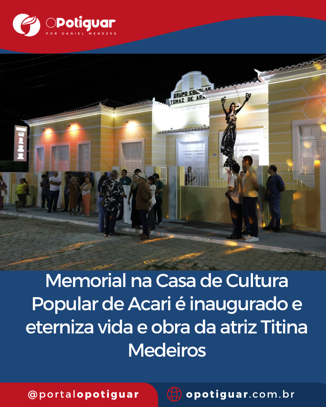 O Governo do Rio Grande do Norte inaugurou, na noite desta sexta-feira (17), em Acari (RN), o Memorial Titina Medeiros – Território de Encantamentos, um espaço permanente dedicado à preservação da memória e da trajetória de uma das mais importantes artistas potiguares. Instalado na Casa de Cultura Popular Palácio Titina Medeiros, o memorial reuniu autoridades, familiares, artistas e a comunidade local em uma cerimônia marcada por emoção, reconhecimento e celebração da vida e da obra da atriz.