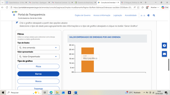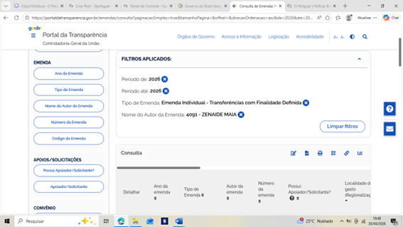 Veja os prints de tela do Portal da Transparência/Siga Brasil